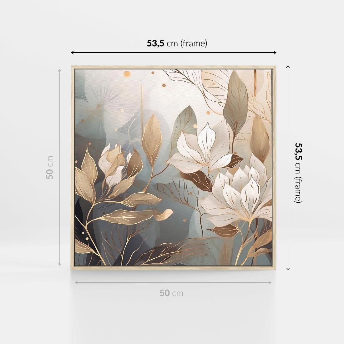 Obraz w ramie 50x50 - Ekspresjonistyczny deszcz uczuć - grafika, złote kwiaty - rama drewno