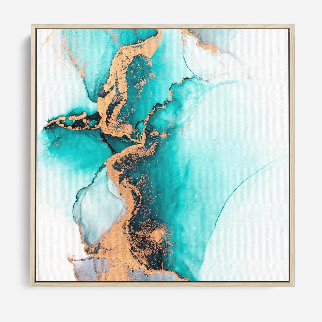Obraz w ramie 50x50 - Elegancja i Subtelność - marmur, złoto - rama drewno