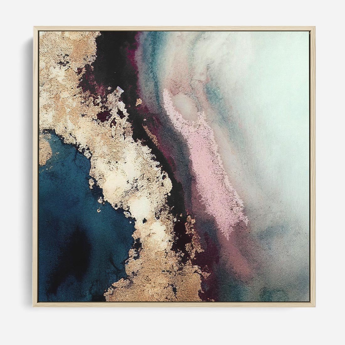 Obraz w ramie 50x50 - Elegancki Impuls - abstrakcyjne plamy, rozlana farba - rama drewno
