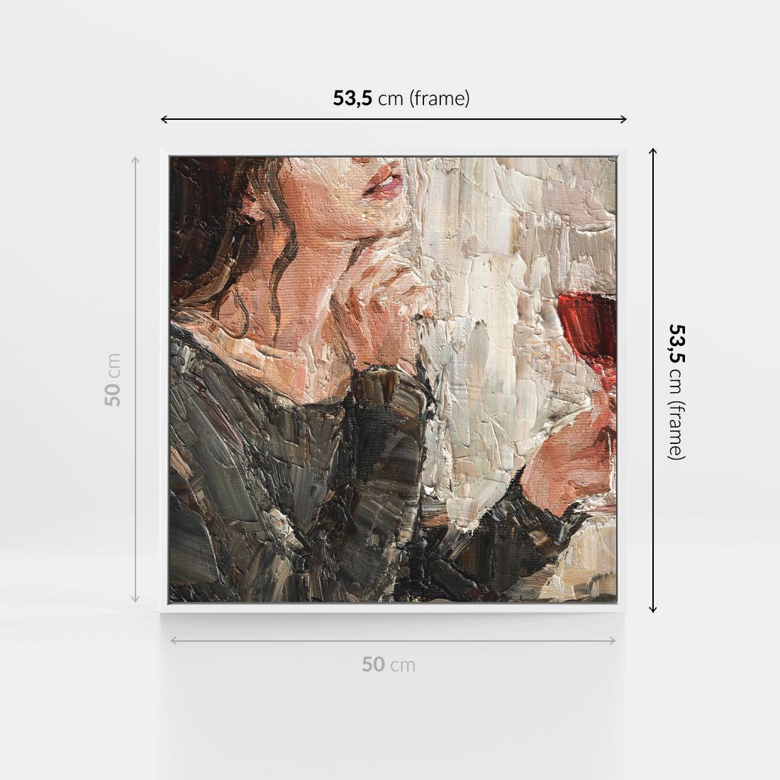 Obraz w ramie 50x50 - Esencja - kobieta wino obraz impresonizm olej na płótnie - rama biała