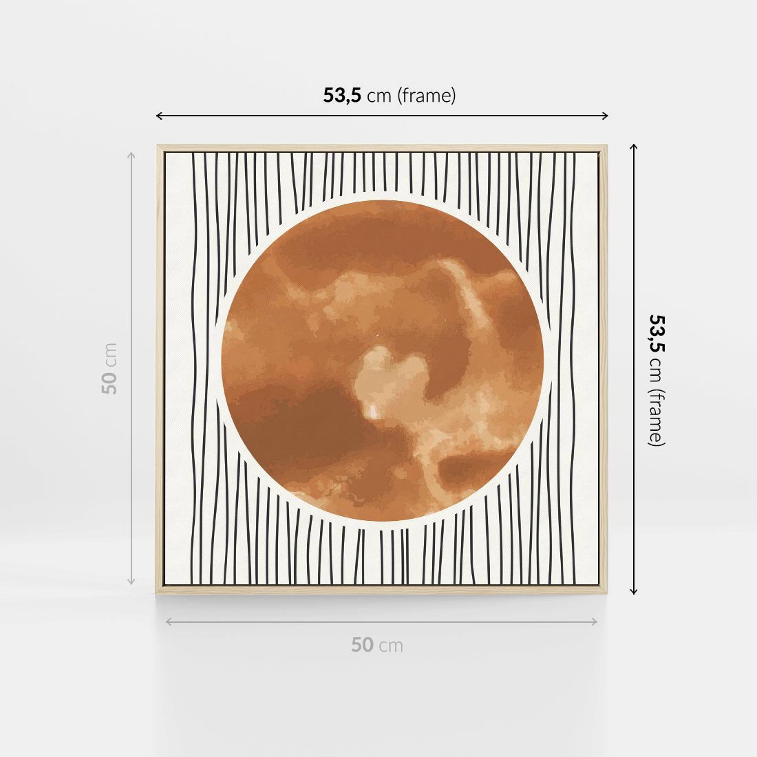 Obraz w ramie 50x50 - Eteryczne Krągłe Echa - boho obraz, geometria - rama drewno