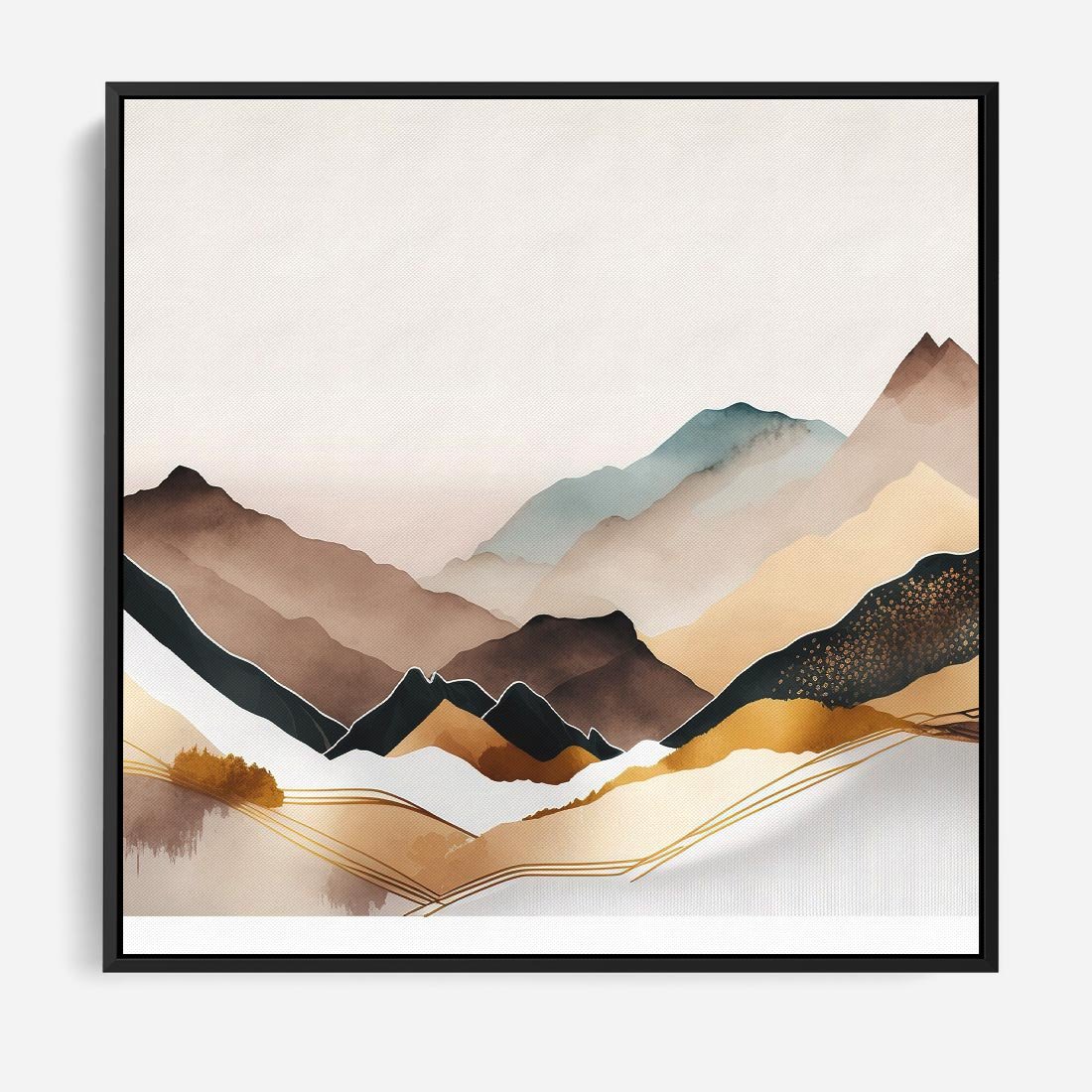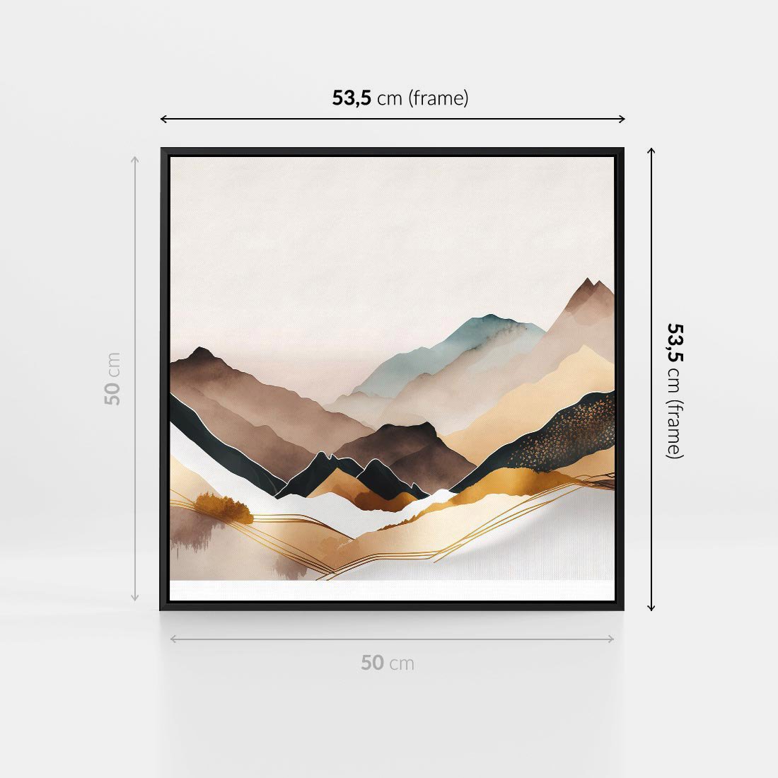 Obraz w ramie 50x50 - Góry Tonące w Pastelach - złote pastelowe góry, akwarela - rama czarna