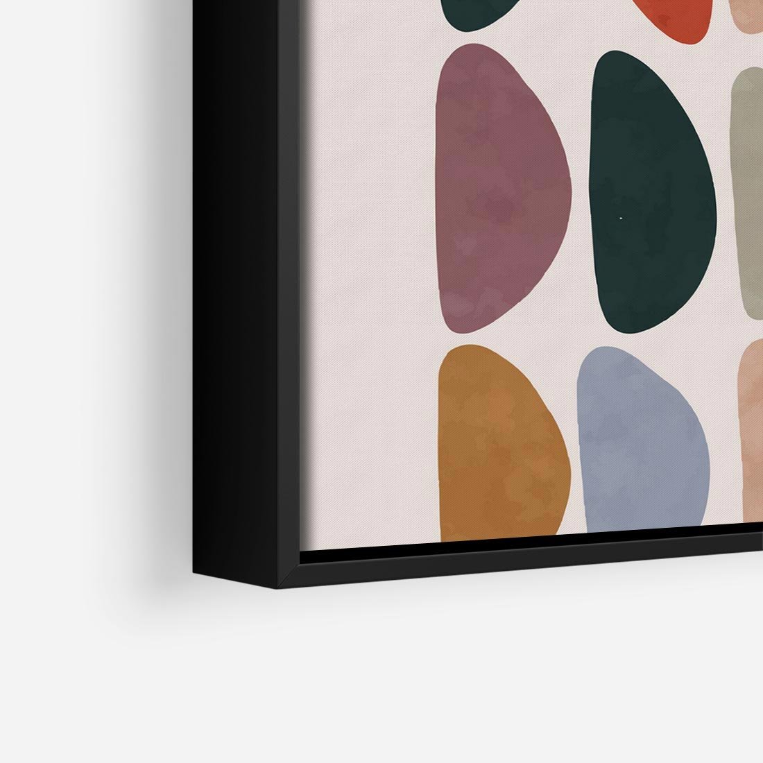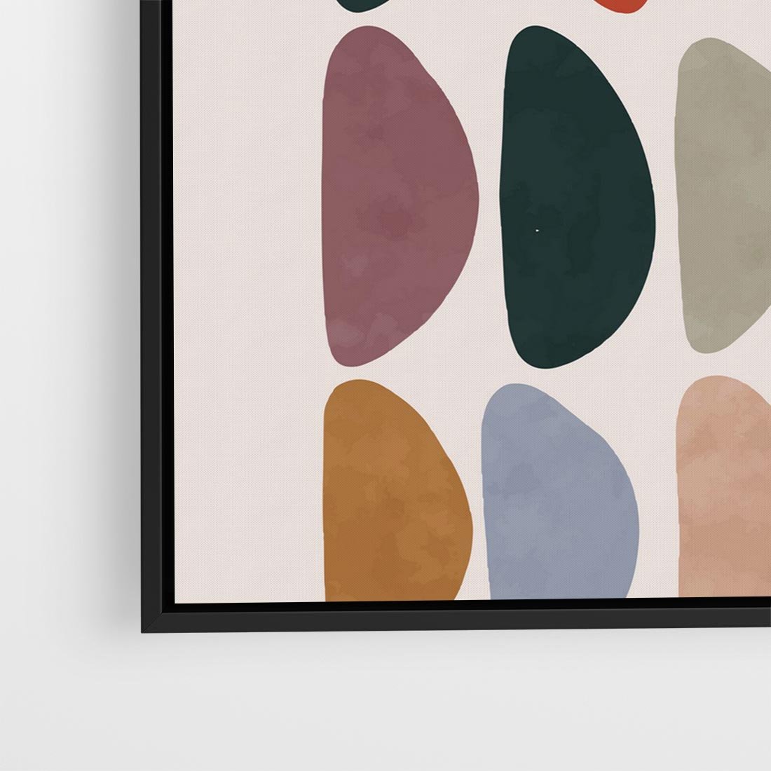 Ten abstrakcyjny obraz prezentuje geometryczną kompozycję w stylu boho. Kształty i linie tworzą harmonijną równowagę, a delikatne odcienie kolorów dodają mu charakterystycznego uroku. To idealny plakat, który wprowadzi subtelność i wyjątkowość do każdego wnętrza.