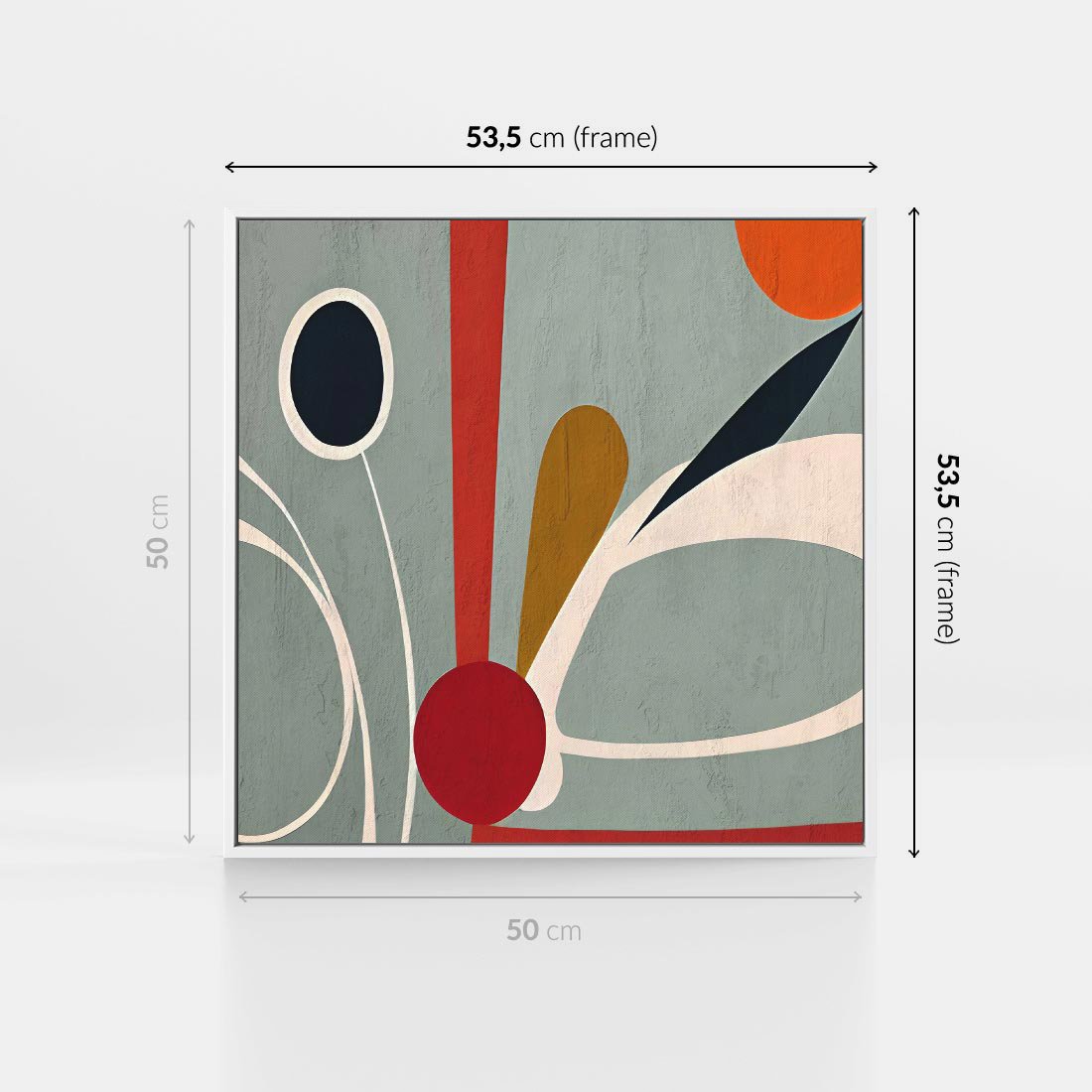 Obraz w ramie 50x50 - Harmonia Kolorowych Impulsów - abstrakcyjny obraz olejny, dziwne formy - rama biała