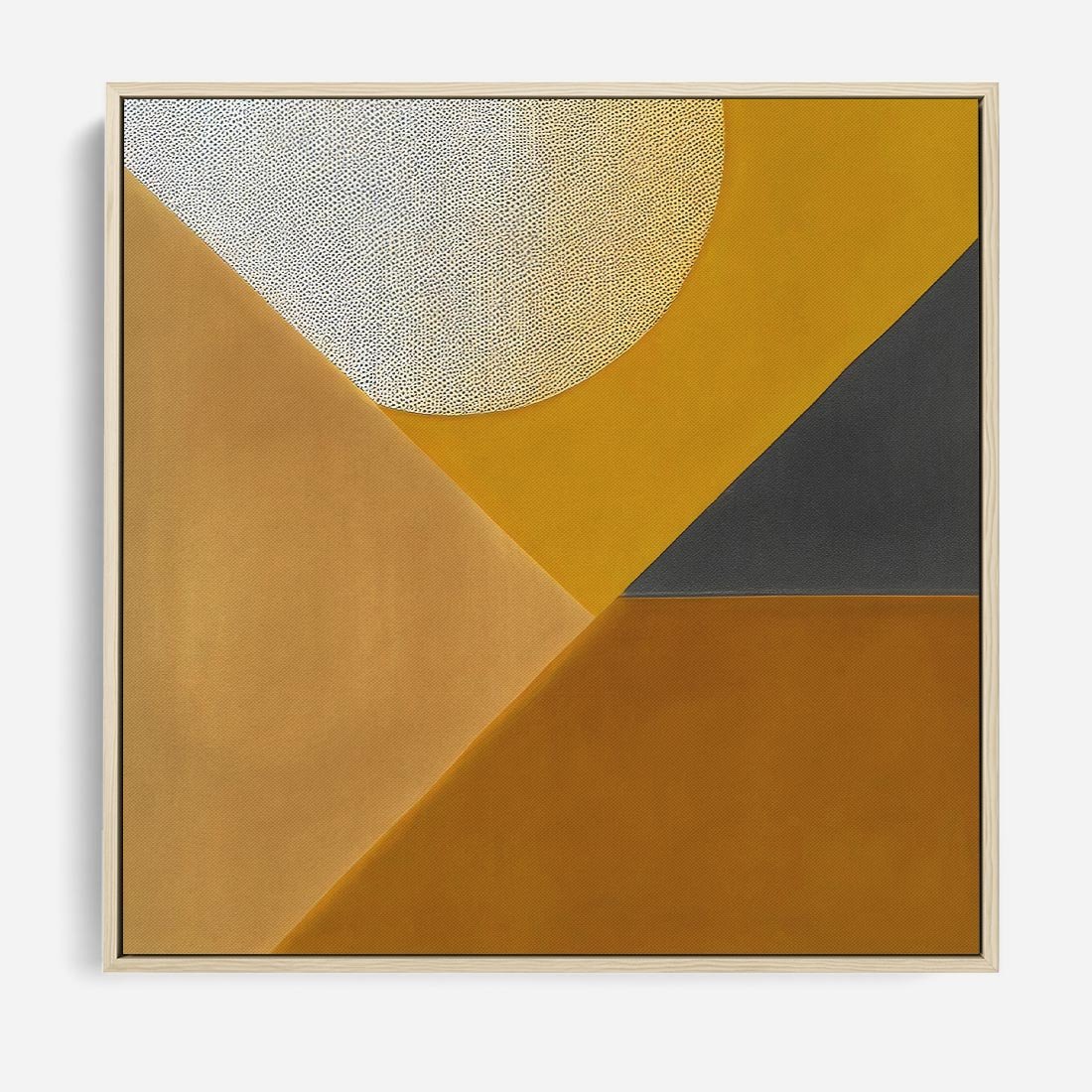 Zanurz się w intensywnych ciepłych kolorach tego obrazu, gdzie dominuje słoneczny żółty. Geometryczny podział płótna tworzy dynamiczną kompozycję kształtów. To dzieło sztuki w stylu nowoczesnym, stworzone dla miłośników ekspresyjnej estetyki i artystycznej wyrazistości. Doskonały akcent dla tych, którzy pragną wprowadzić do swoich wnętrz energię i wyrazistą ekspresję.