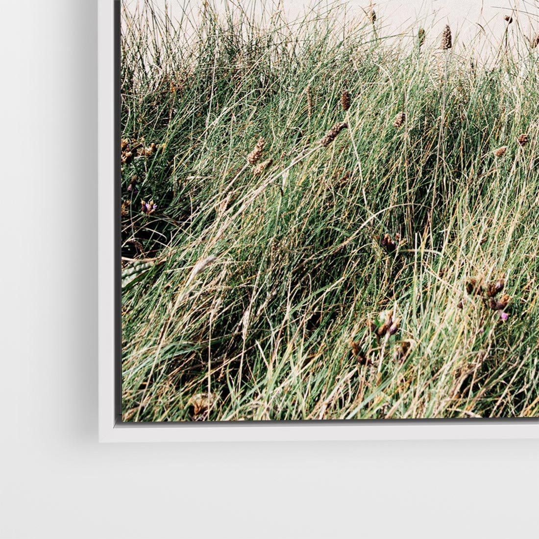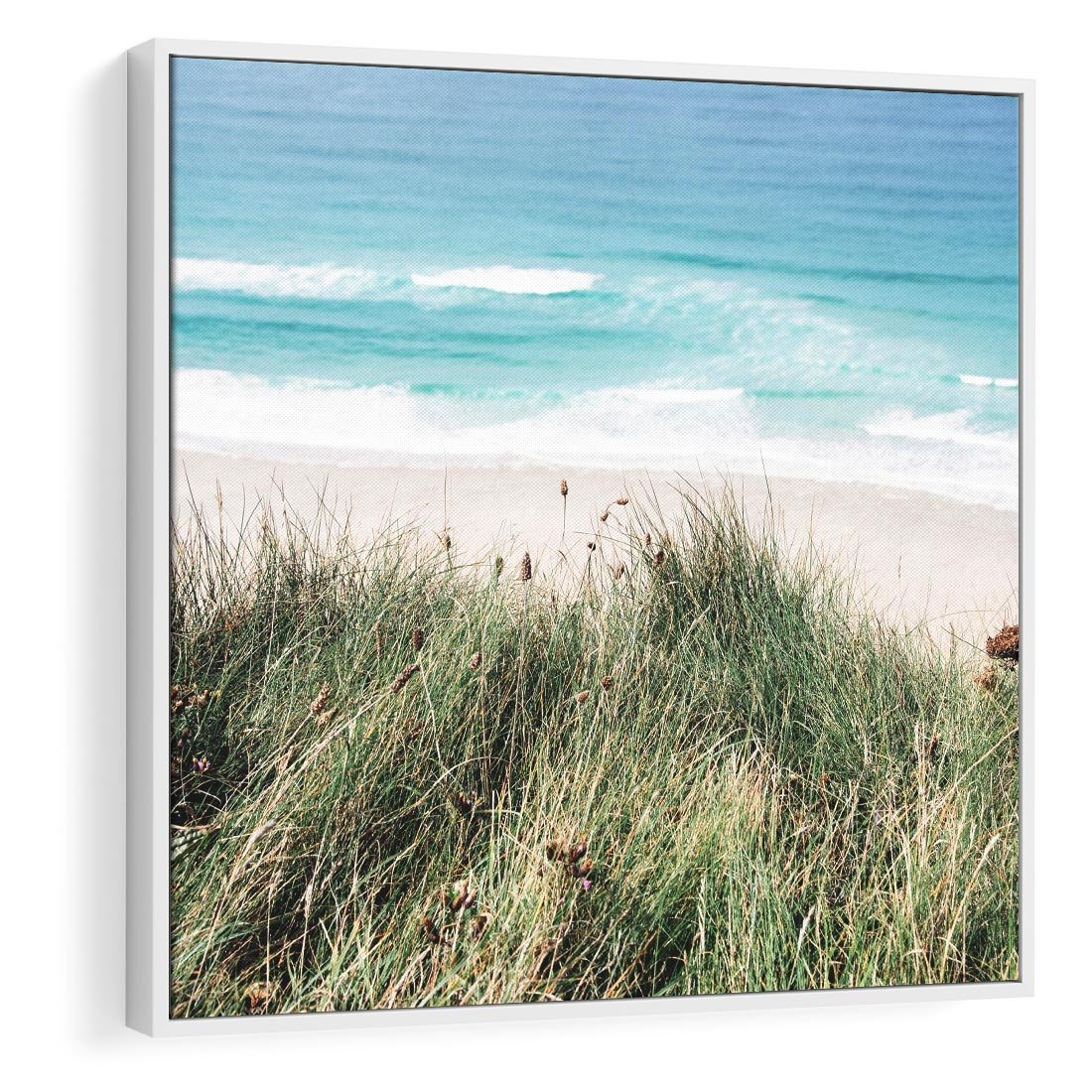 Obraz w ramie 50x50 - Harmonia Natury - widok z wydm, wydmy porośnięte trawami - rama biała