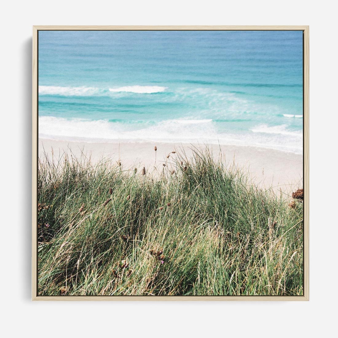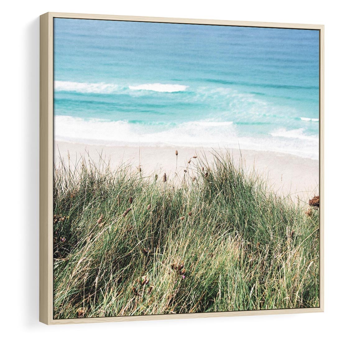 Obraz w ramie 50x50 - Harmonia Natury - widok z wydm, wydmy porośnięte trawami - rama drewno