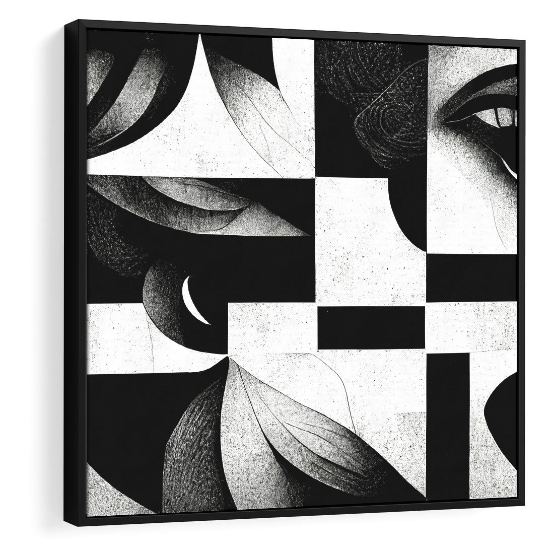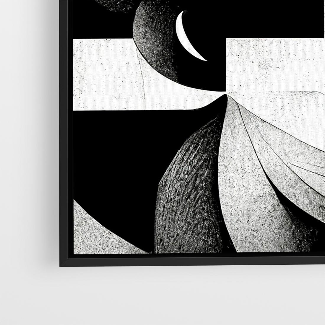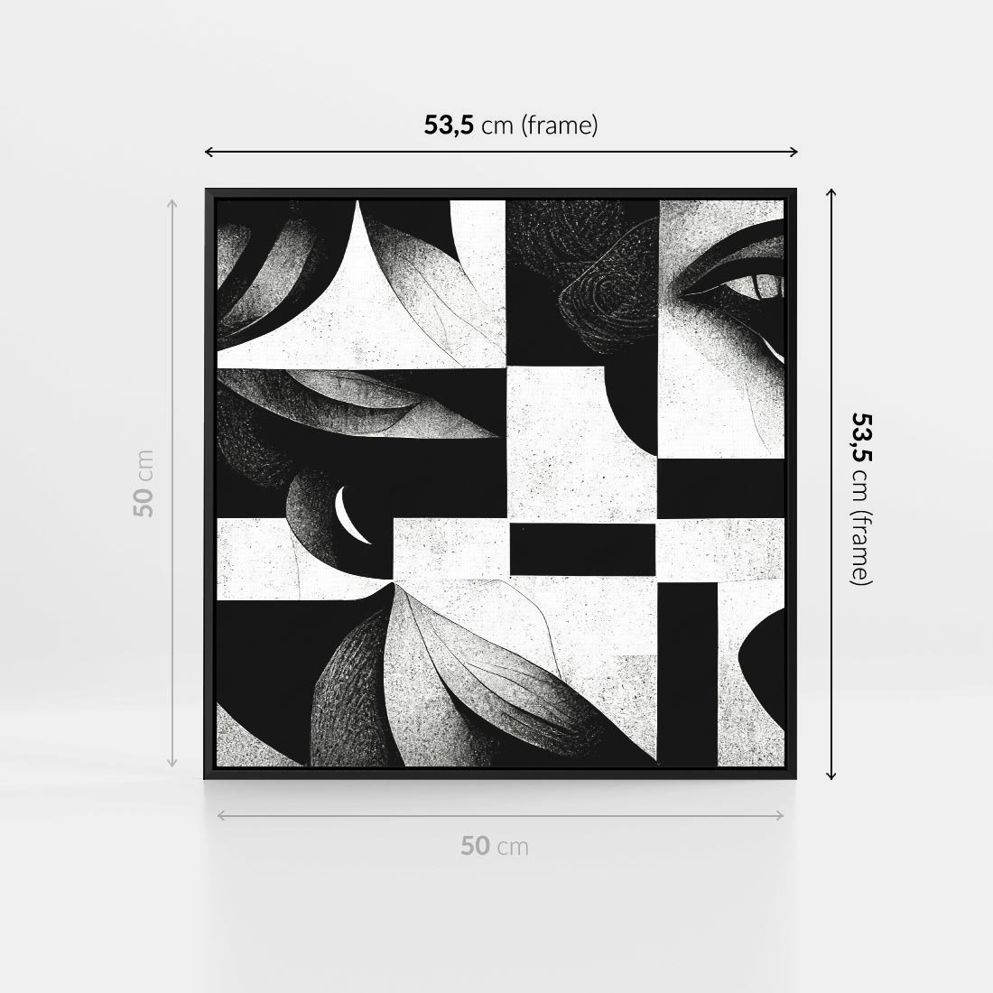 Wzorowana na modernistycznym stylu, abstrakcyjna kompozycja w czerni i bieli przyciąga uwagę. Geometria i elementy roślin tworzą harmonię kontrastów, a ukryte oko dodaje tajemniczości. To dzieło sztuki o loftowym charakterze, które wprowadzi eklektyczny powiew do Twojego wnętrza.