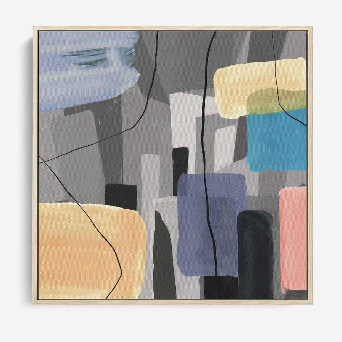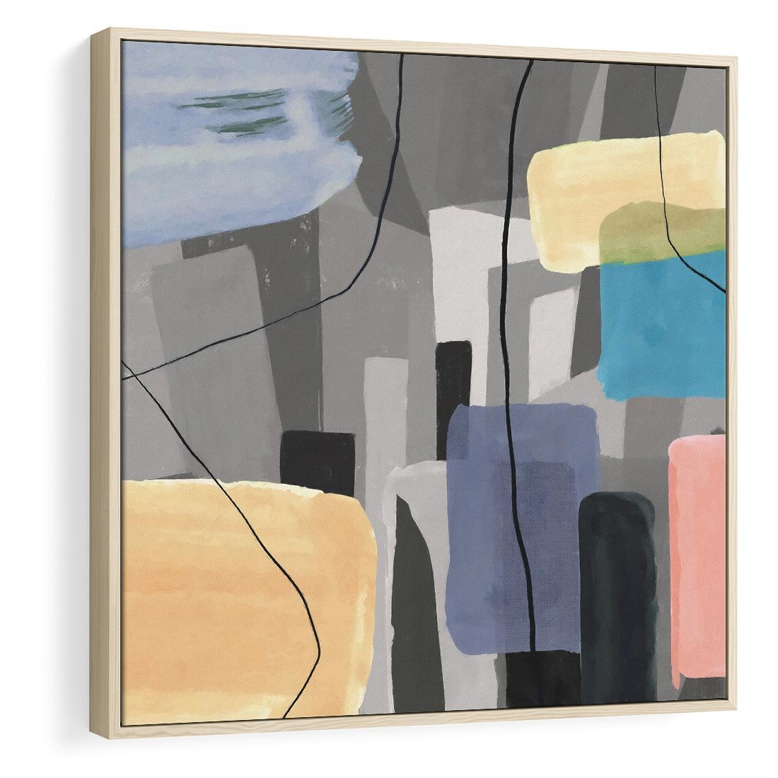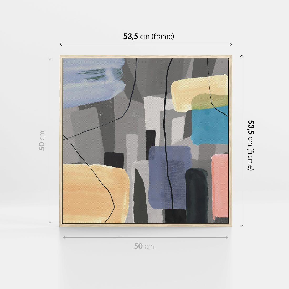 Obraz w ramie 50x50 - Harmonia w chaosie serca - abstrakcja na szarym tle, kolorowe plamy koloru - rama drewno