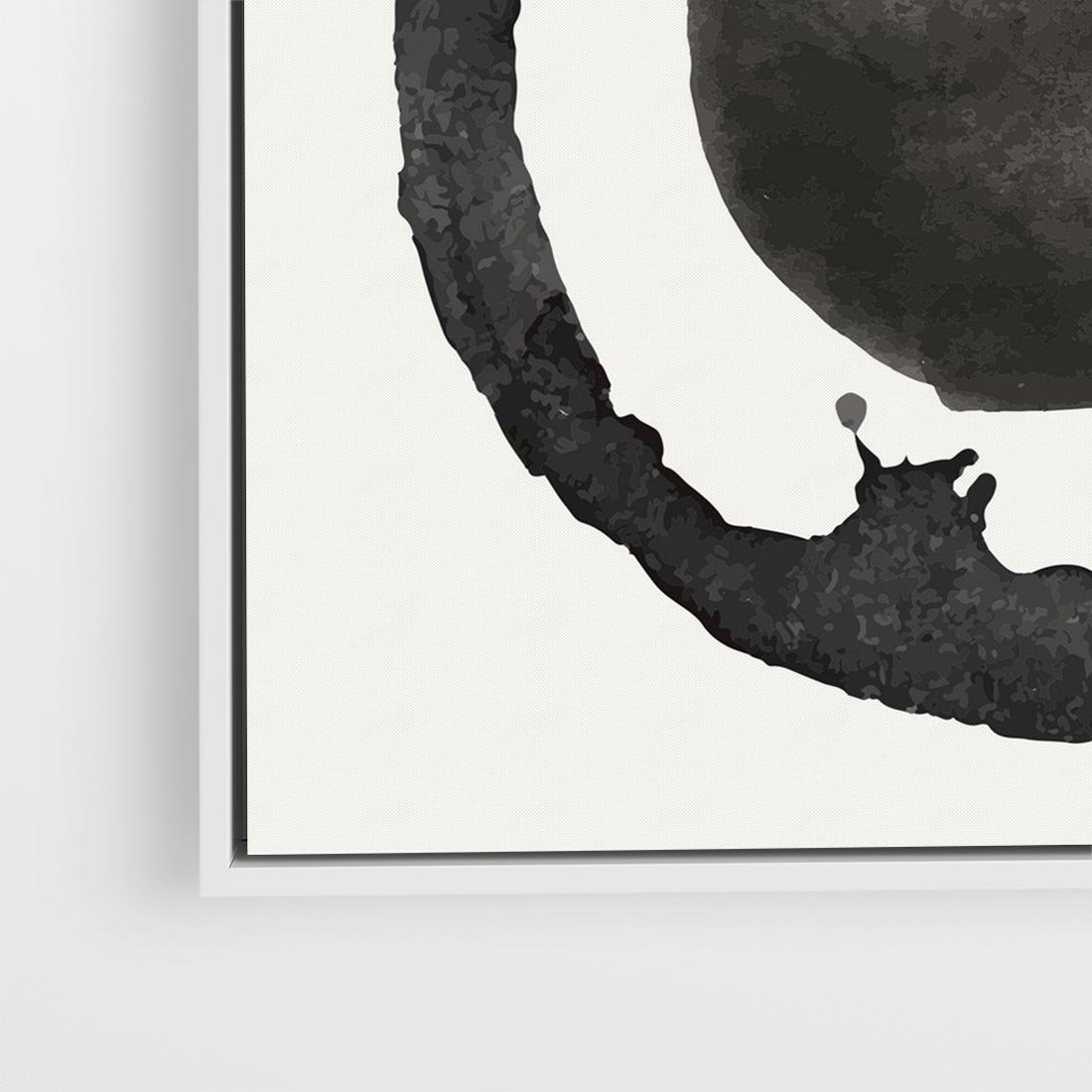 Ten obraz to subtelna kompozycja abstrakcyjnych plam i okręgów w akwarelowych odcieniach. Biało-czarna sztuka w minimalistycznym stylu przynosi elegancję i harmonię.