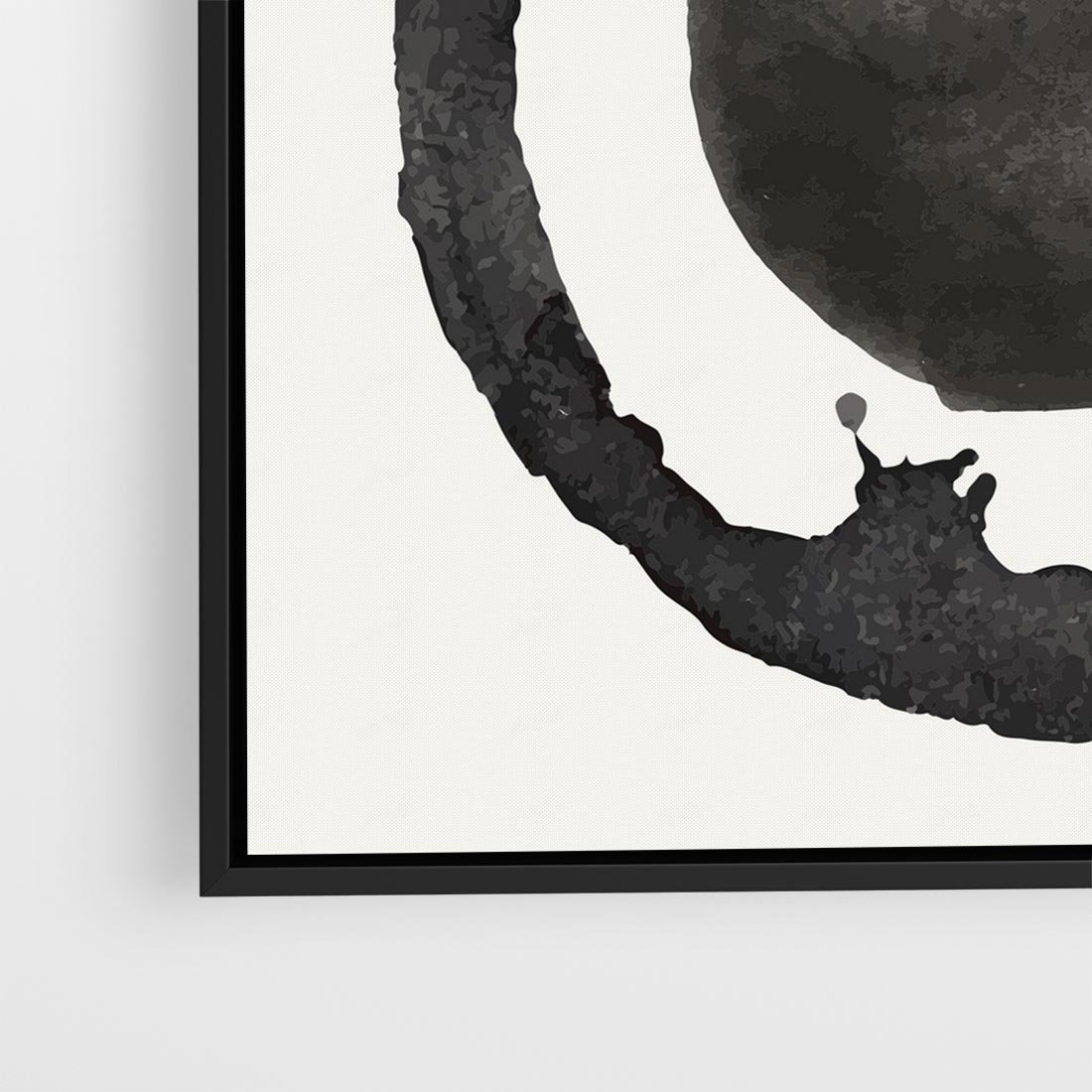 Ten obraz to subtelna kompozycja abstrakcyjnych plam i okręgów w akwarelowych odcieniach. Biało-czarna sztuka w minimalistycznym stylu przynosi elegancję i harmonię.