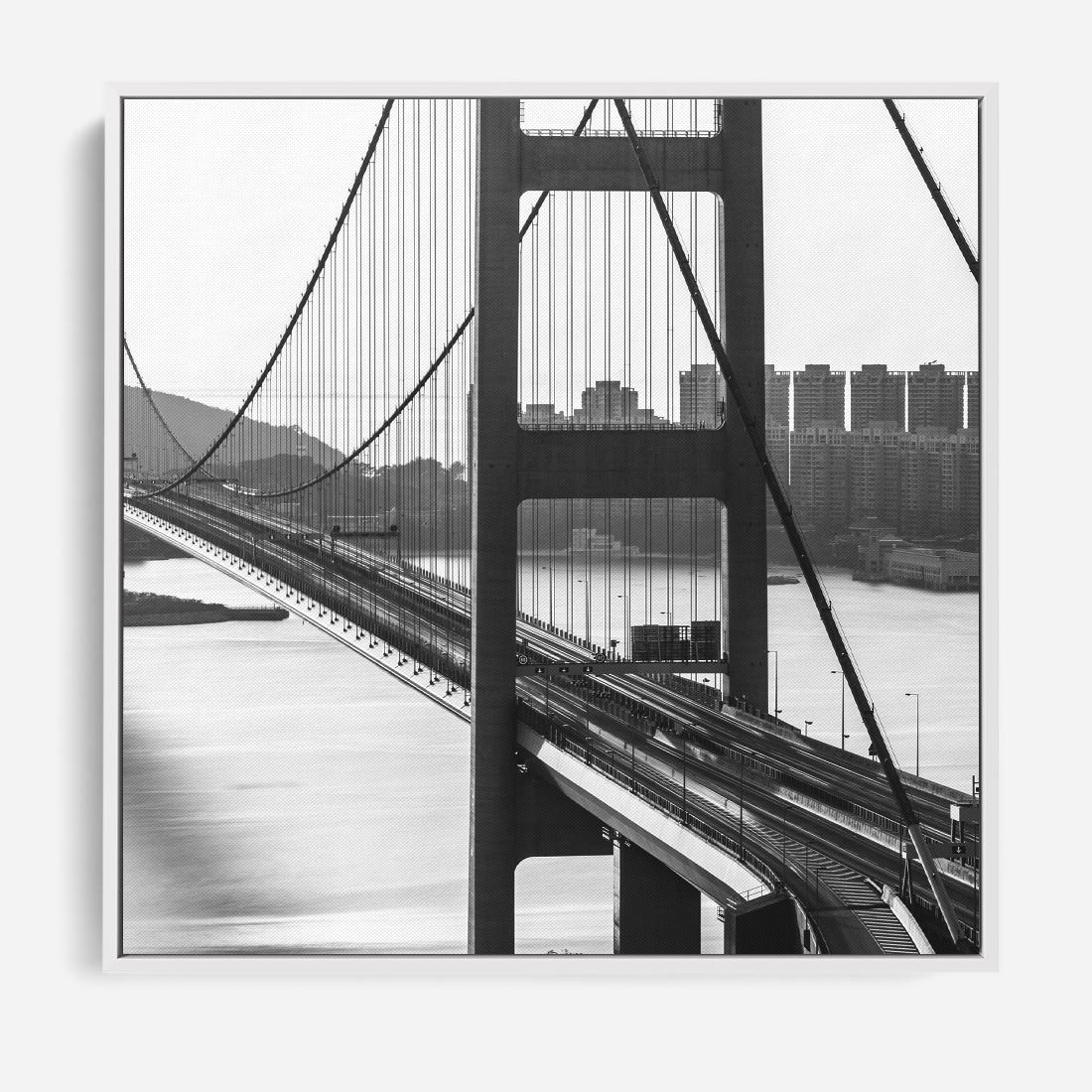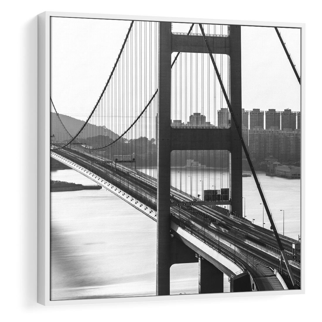 Obraz w ramie 50x50 - Ikona Miasta - most Nowy Jork, czarno biała fotografia - rama biała