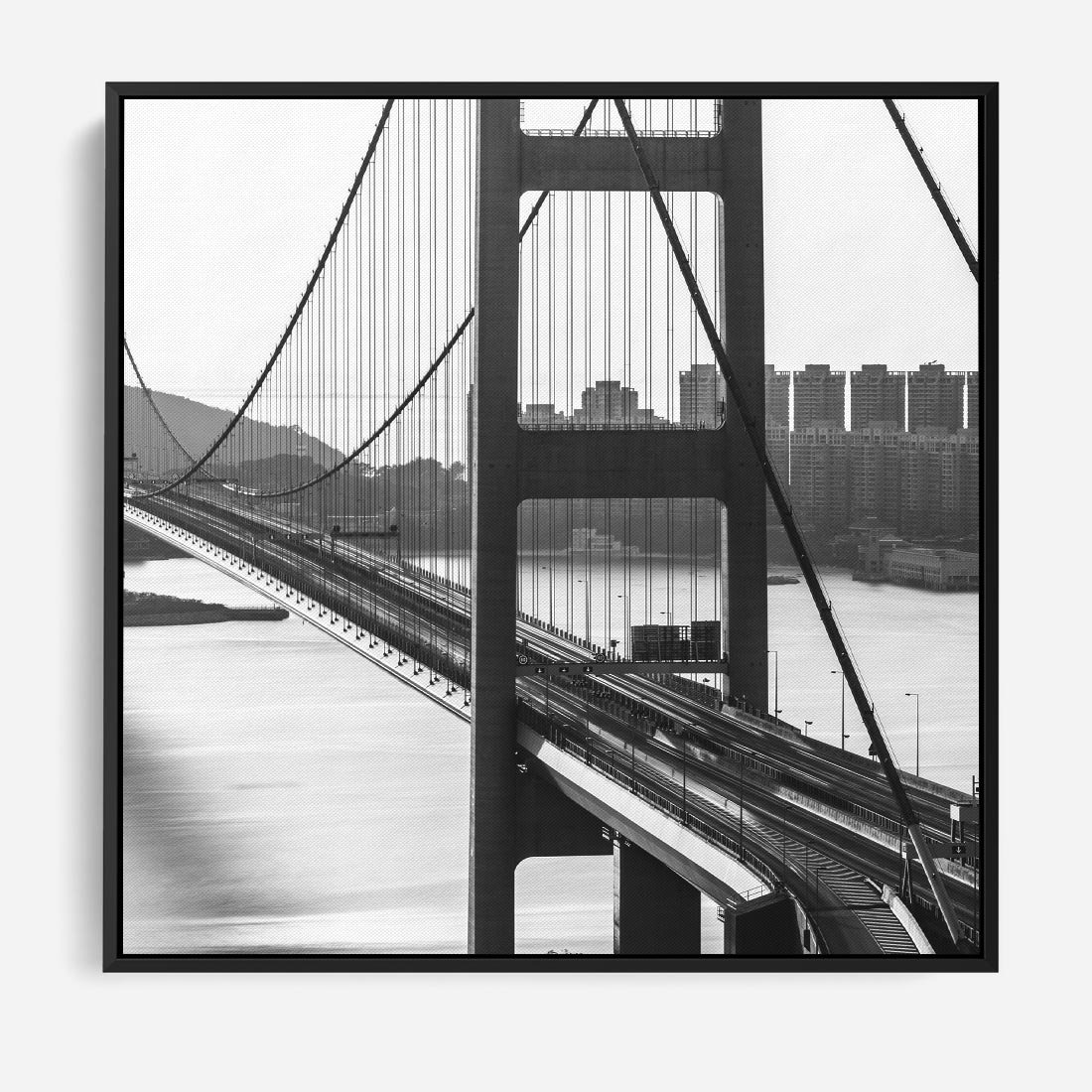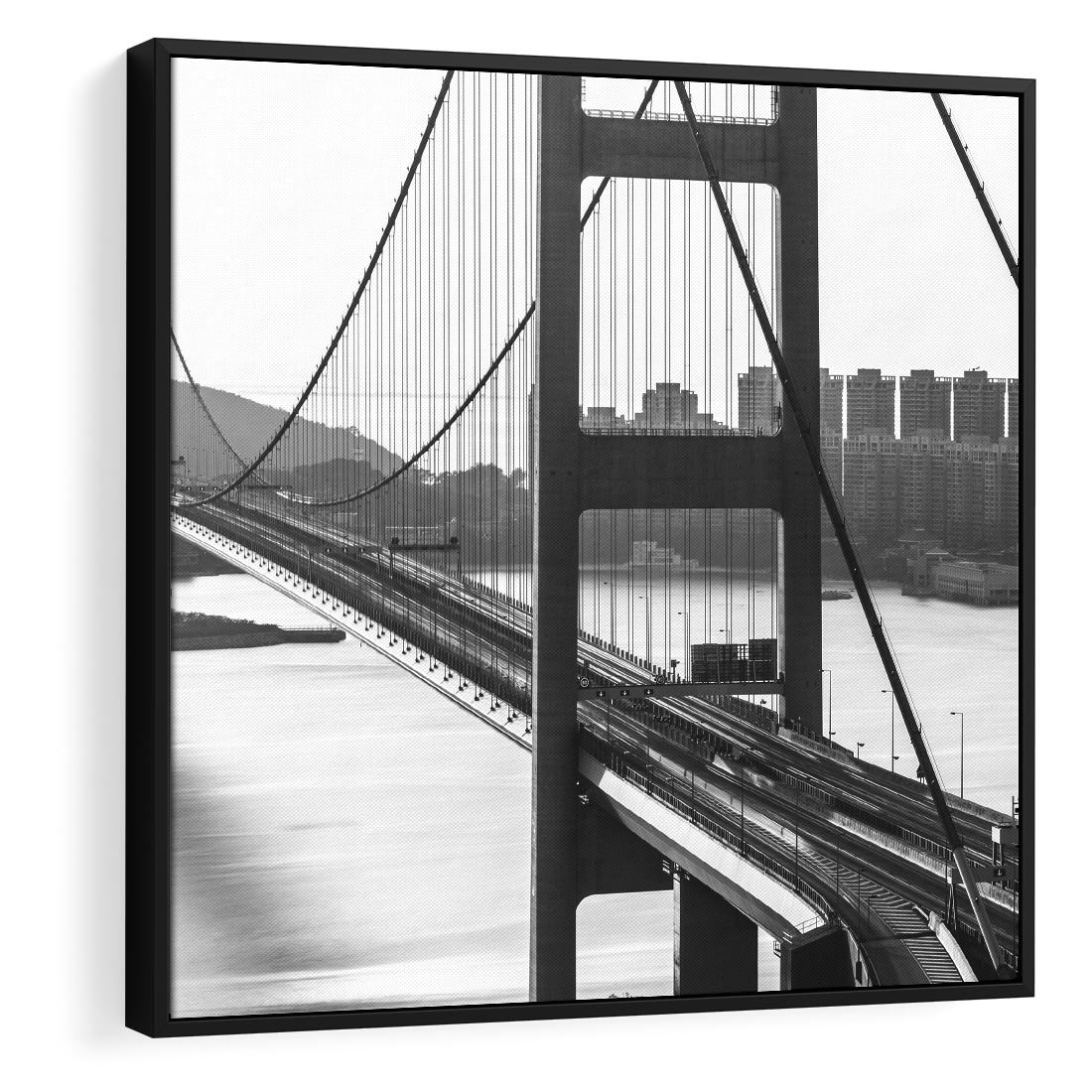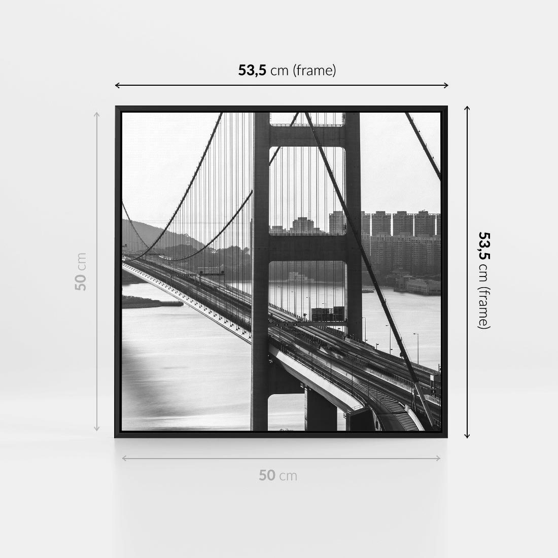 Obraz w ramie 50x50 - Ikona Miasta - most Nowy Jork, czarno biała fotografia - rama czarna