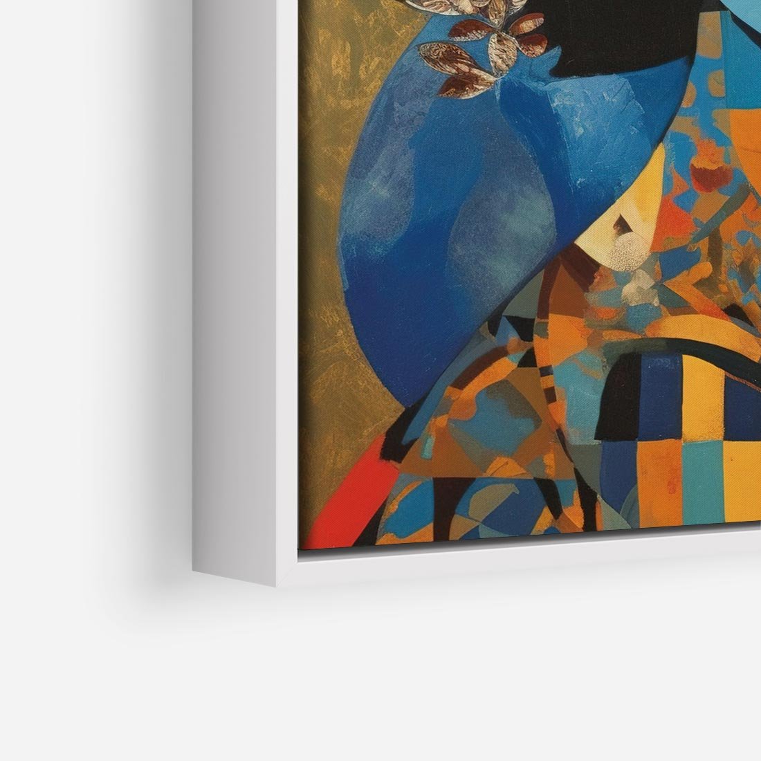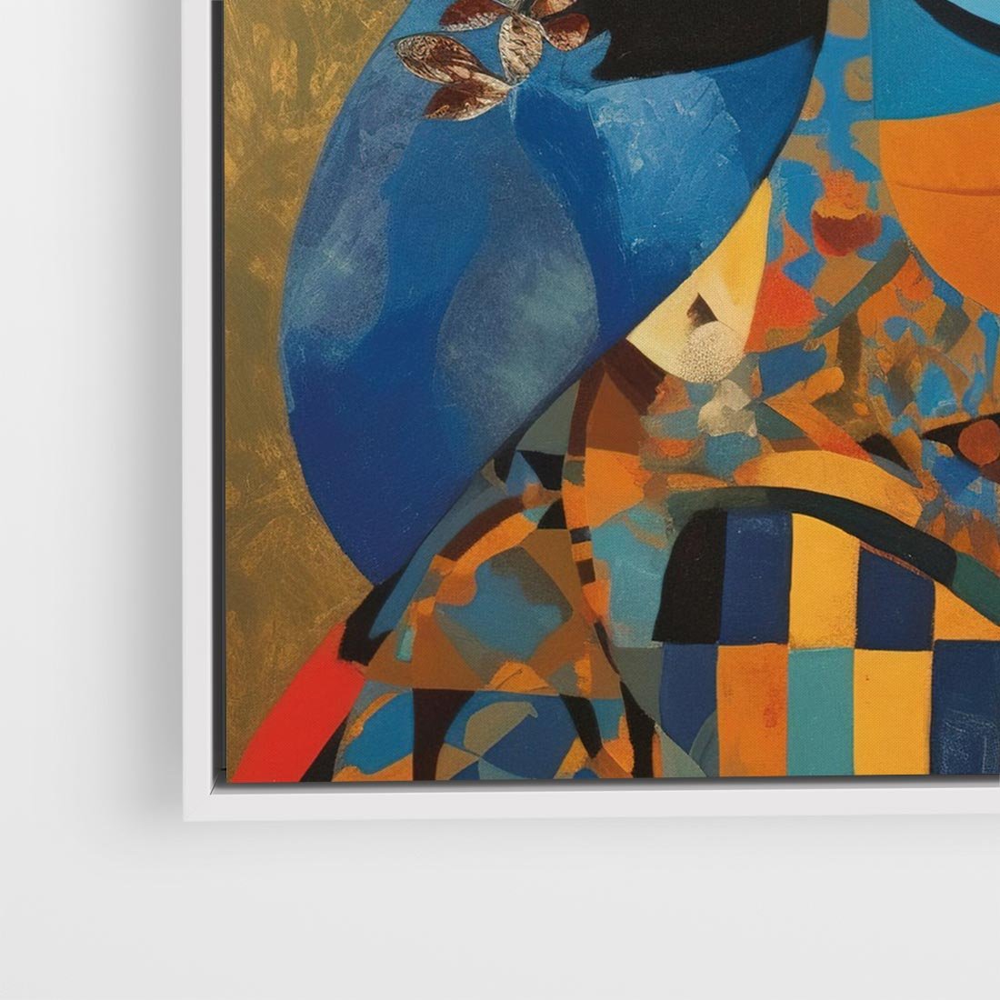 Ten abstrakcyjny obraz przedstawia portret kobiety w stylu przypominającym dzieła Picassa. Wyraziste, kolorowe plamy tworzą unikalną interpretację, oddającą charakter i piękno modelki w niekonwencjonalny sposób.