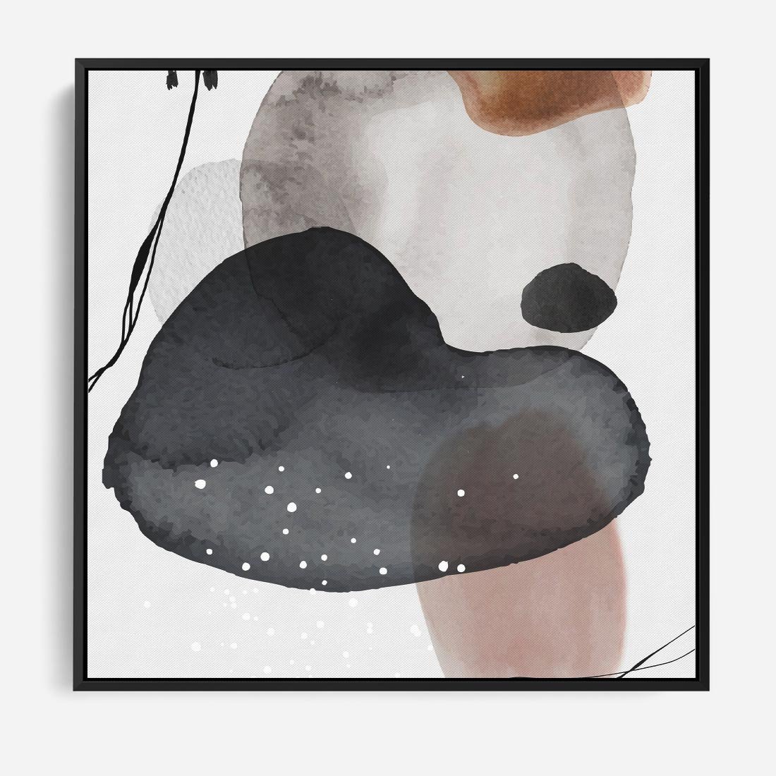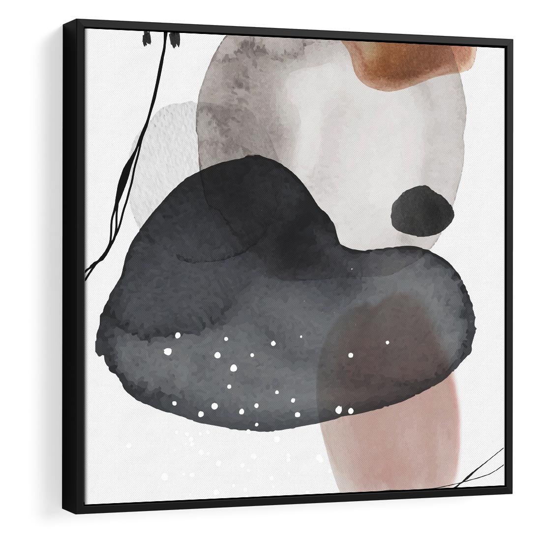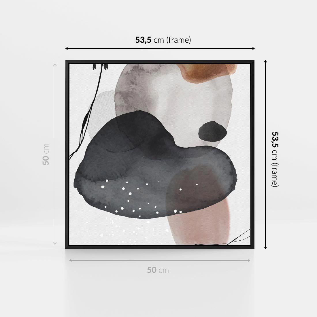 Obraz w ramie 50x50 - Impresje Harmonii - abstrakcyjne plamy akwarelowe, czarny szkic - rama czarna