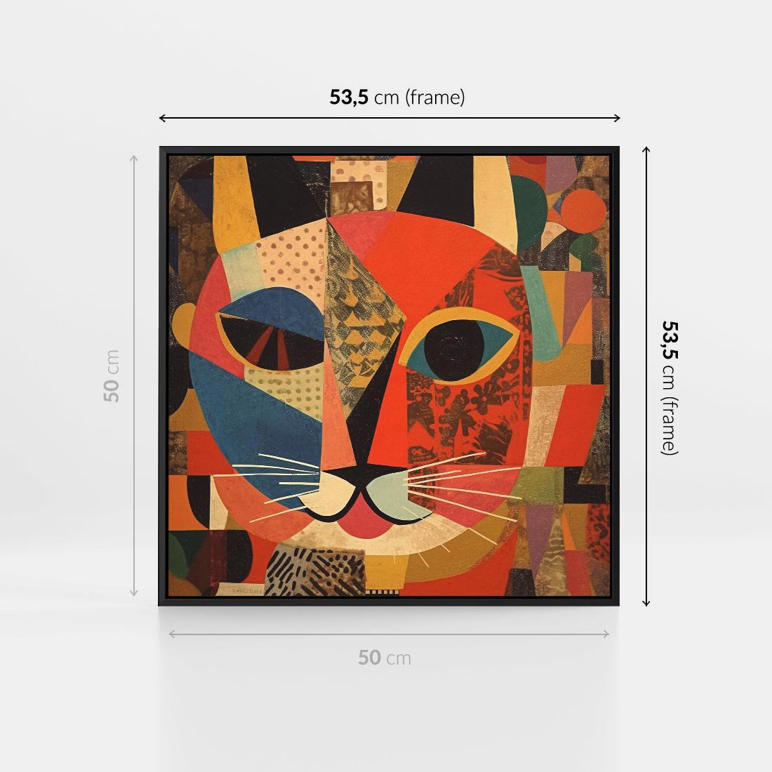Obraz w ramie 50x50 - Impresje Nieznanych Odniesień - abstrakcyjny obraz olejny, kot - rama czarna