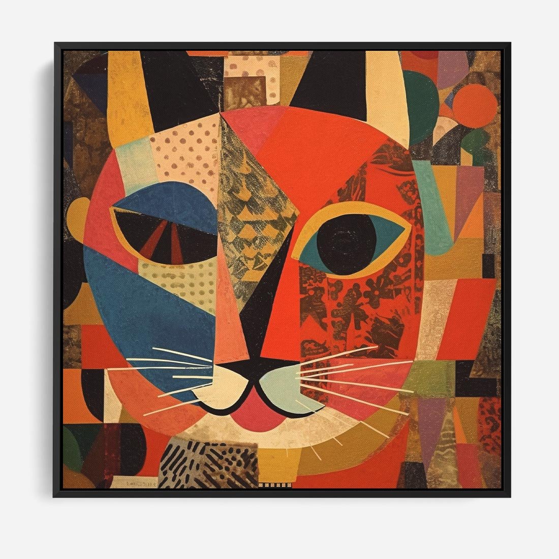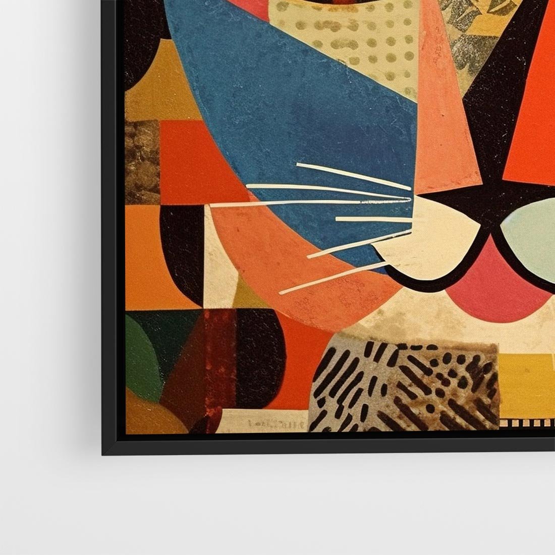 Ten abstrakcyjny obraz olejny przedstawia kota w stylu przypominającym dzieła Picassa. Kontrast pomiędzy kocim profilem a ciemnym tłem tworzy intrygującą atmosferę, oddającą niekonwencjonalne piękno zwierzęcia.