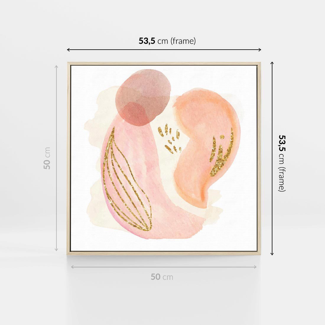 Obraz w ramie 50x50 - Impresje Przenikających Form - abstrakcyjne akwarelowe plamy, minimalizm - rama drewno