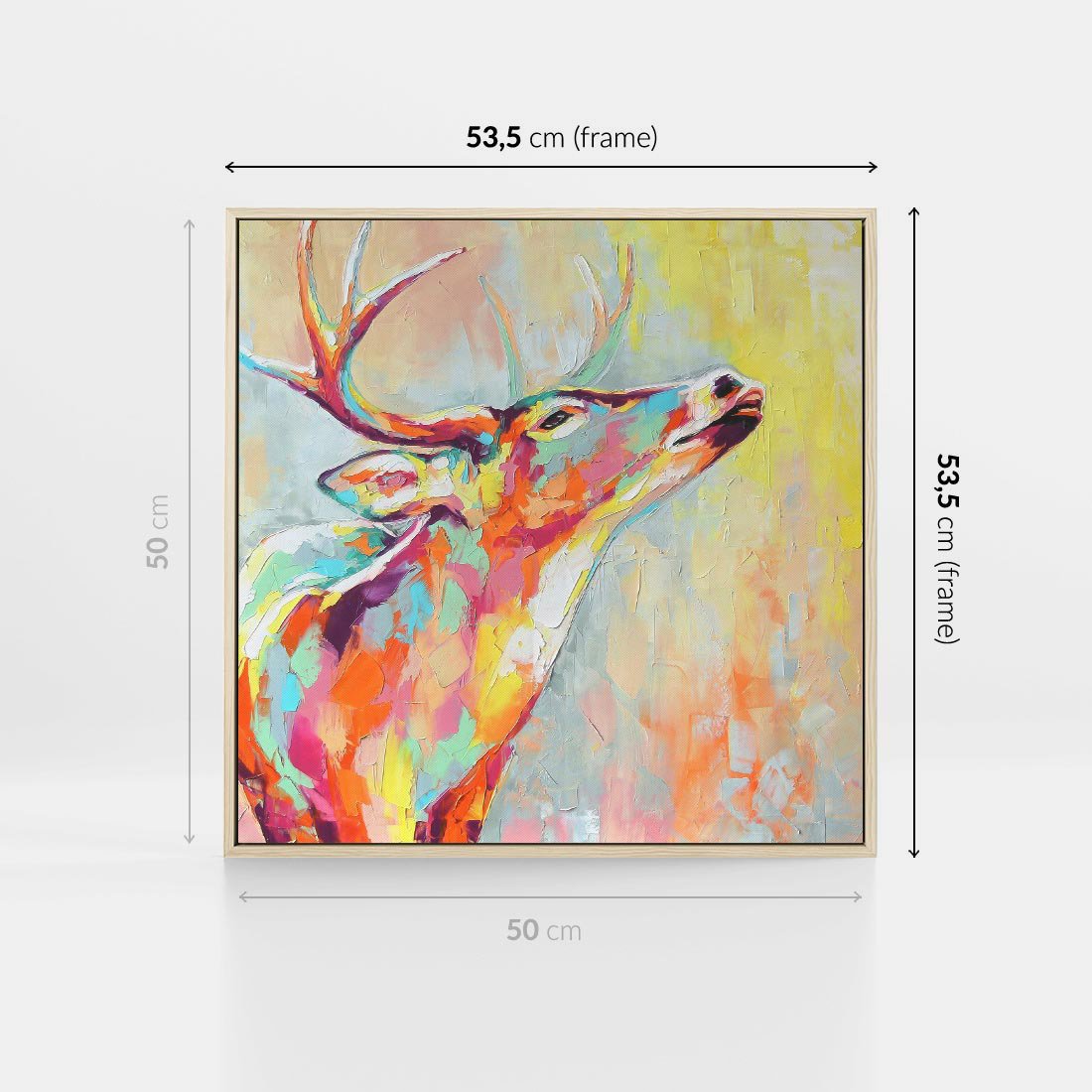 Obraz w ramie 50x50 - Impresje snów malarza - kolorowy olejny obraz, jeleń ryczący na rykowisku - rama drewno