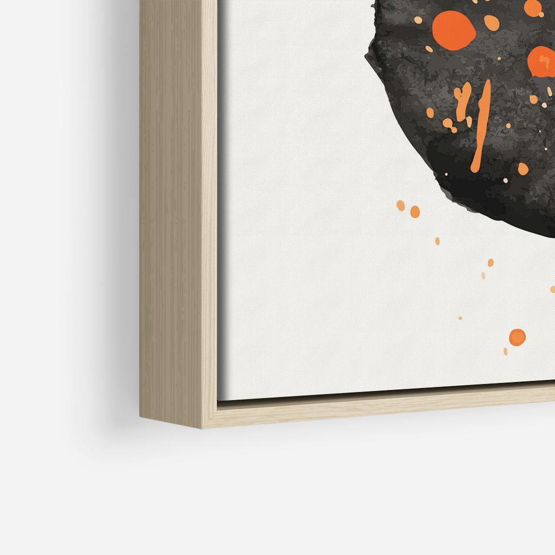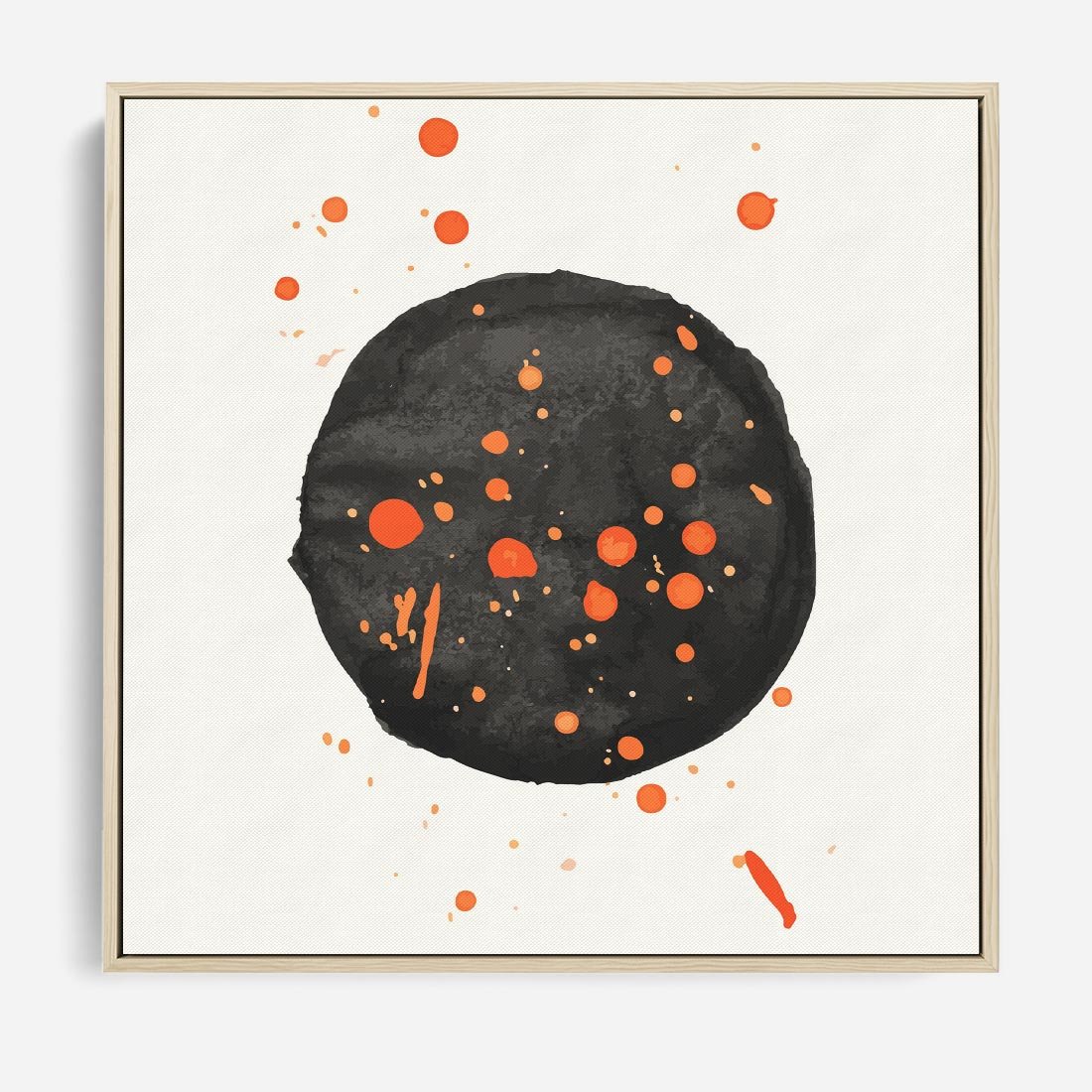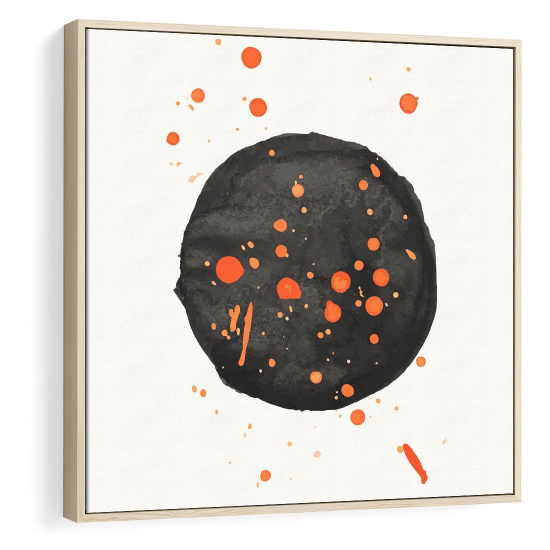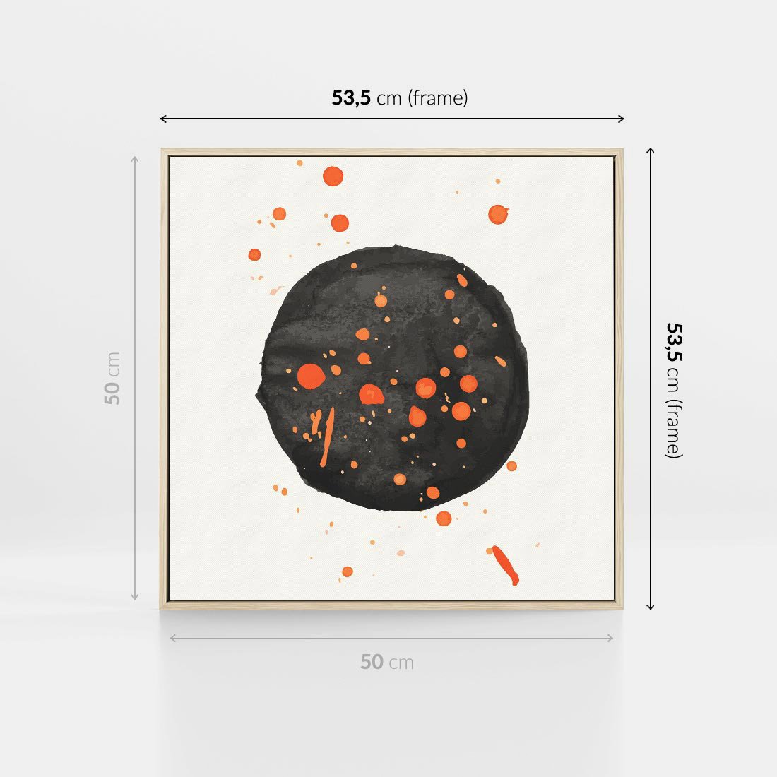 Obraz w ramie 50x50 - Impulsy Kreatywności - abstrakcyjna czarna plama, rozsiane pomarańczowe kropki - rama drewno