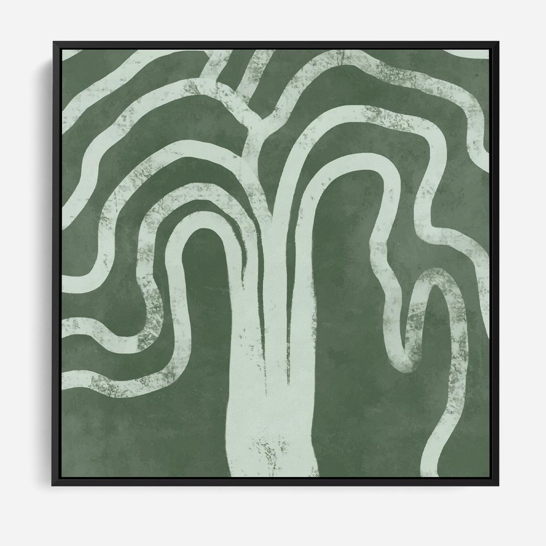 Obraz w ramie 50x50 - Inspirujące Zawiłości Zieleni - abstrakcyjny kształt, zielony plakat - rama czarna
