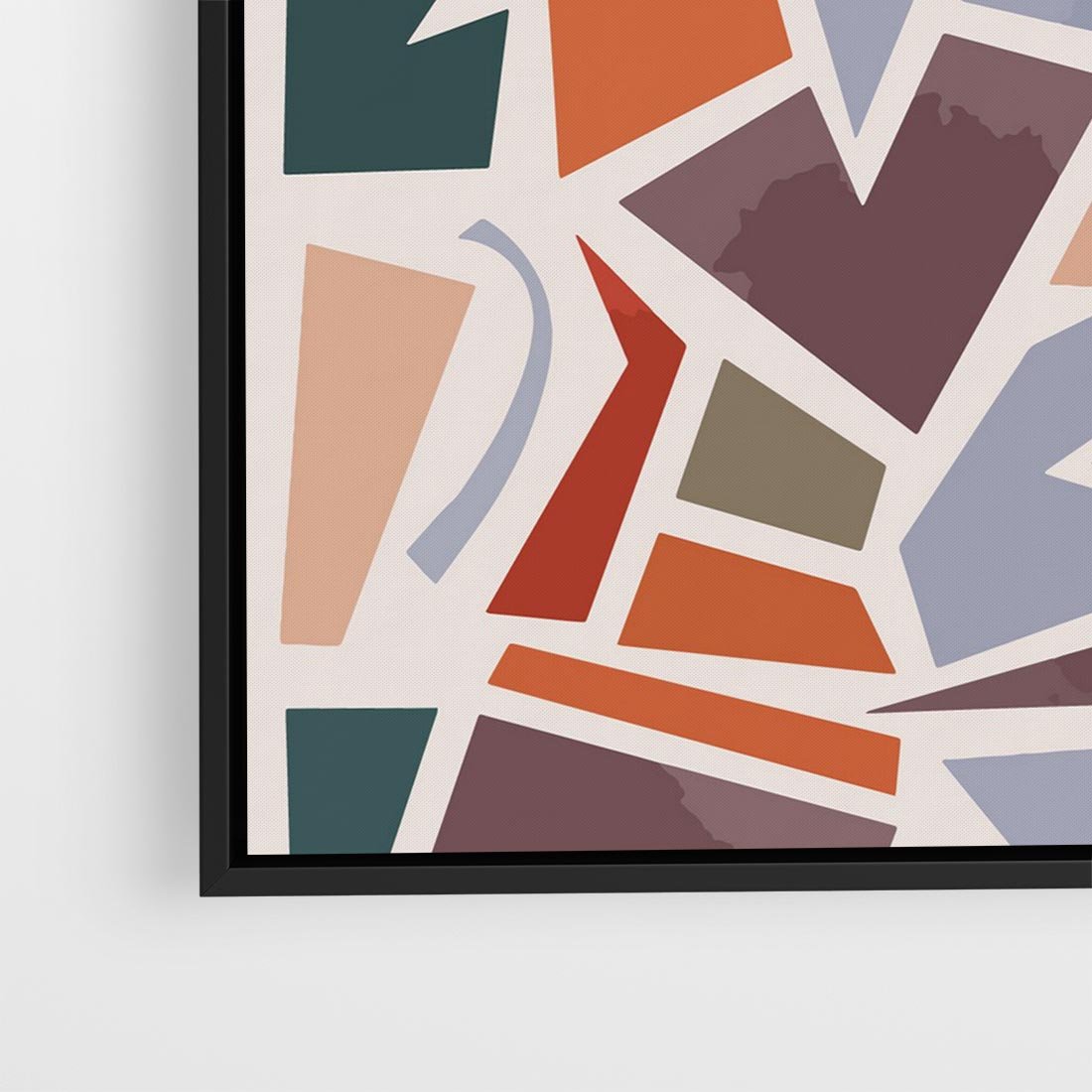 Ten nowoczesny plakat przedstawia geometryczne kształty układające się w mozaikę z różnokolorowych elementów. To połączenie abstrakcji i geometrycznego wzoru wprowadza do Twojej przestrzeni nowoczesność i oryginalność, tworząc jednocześnie interesujący akcent artystyczny.