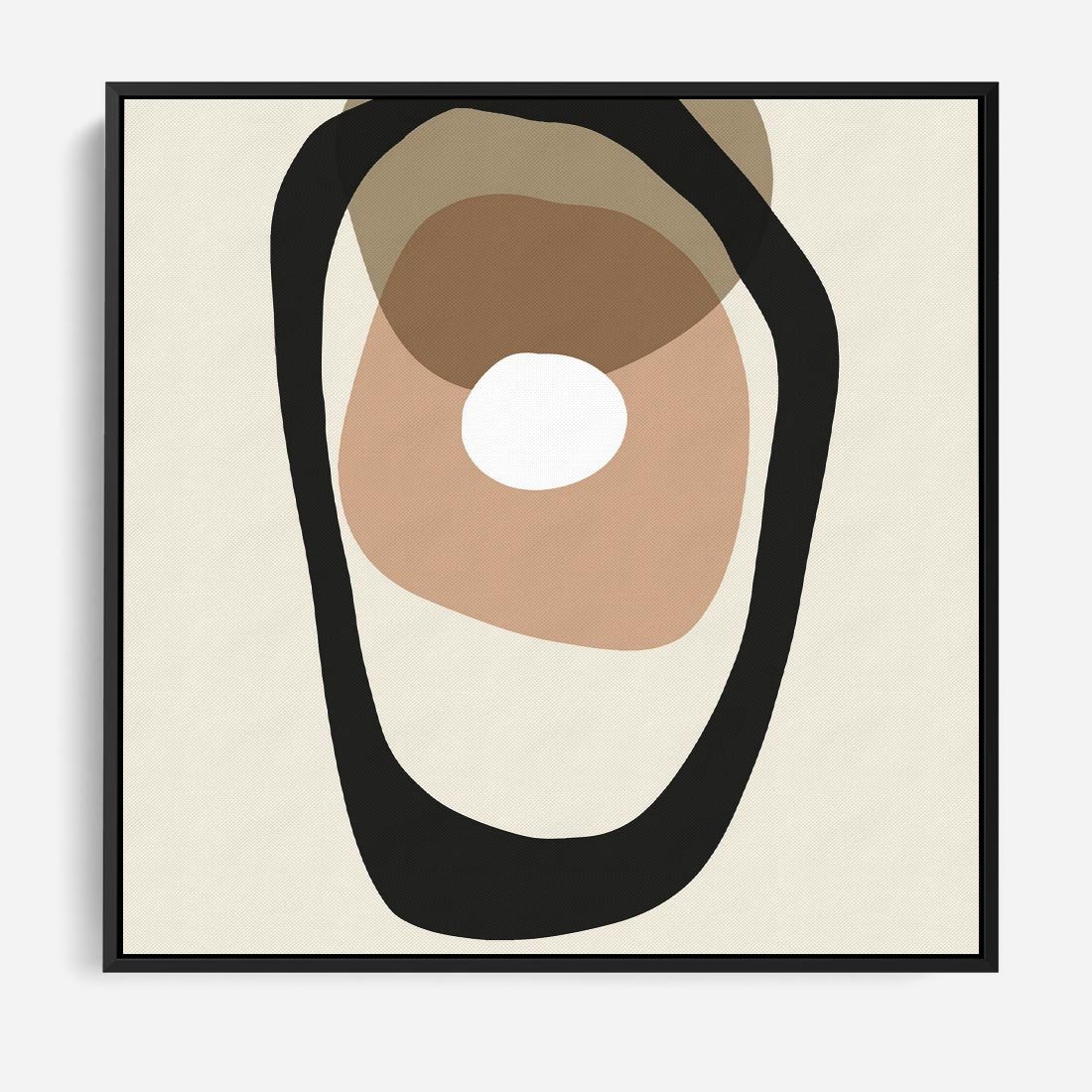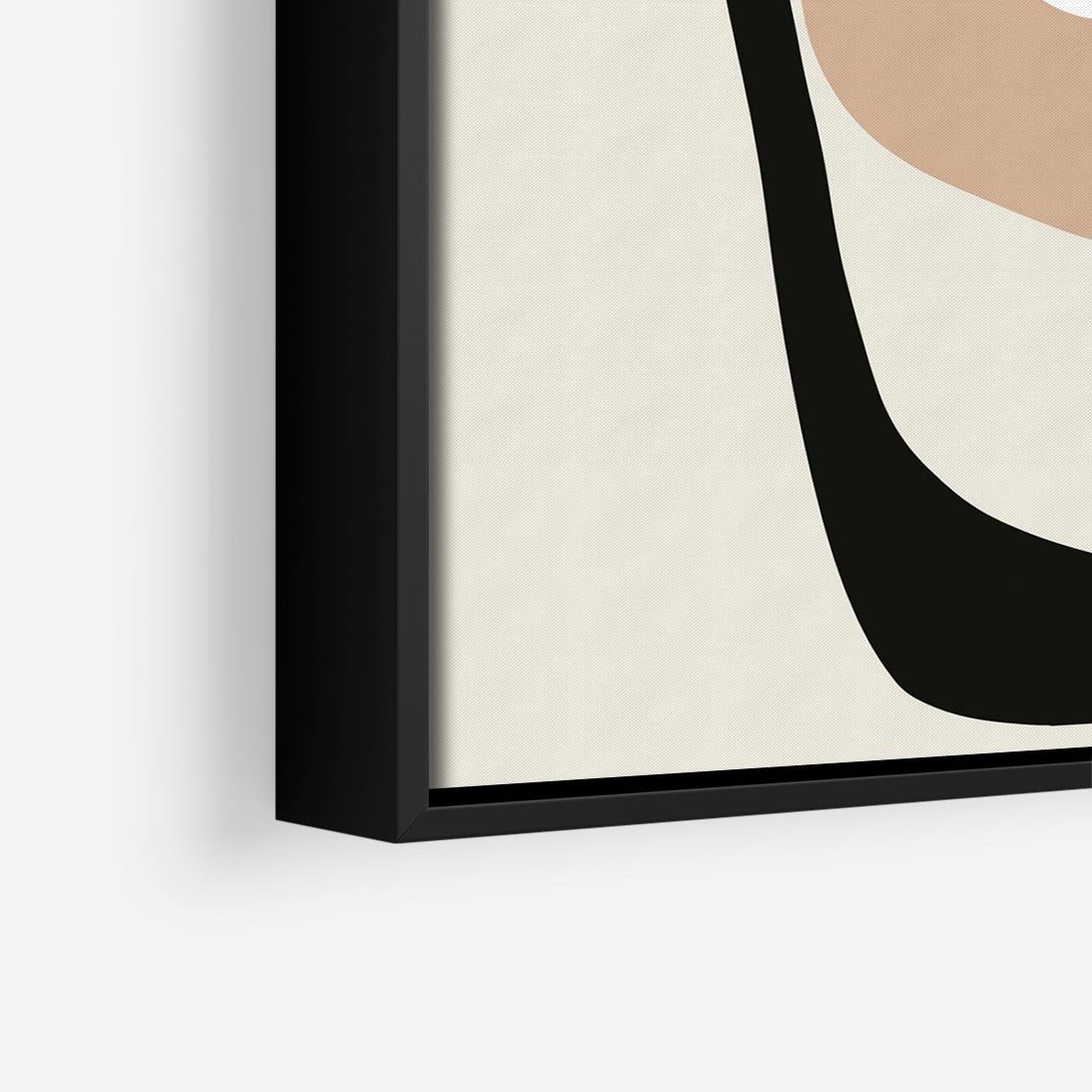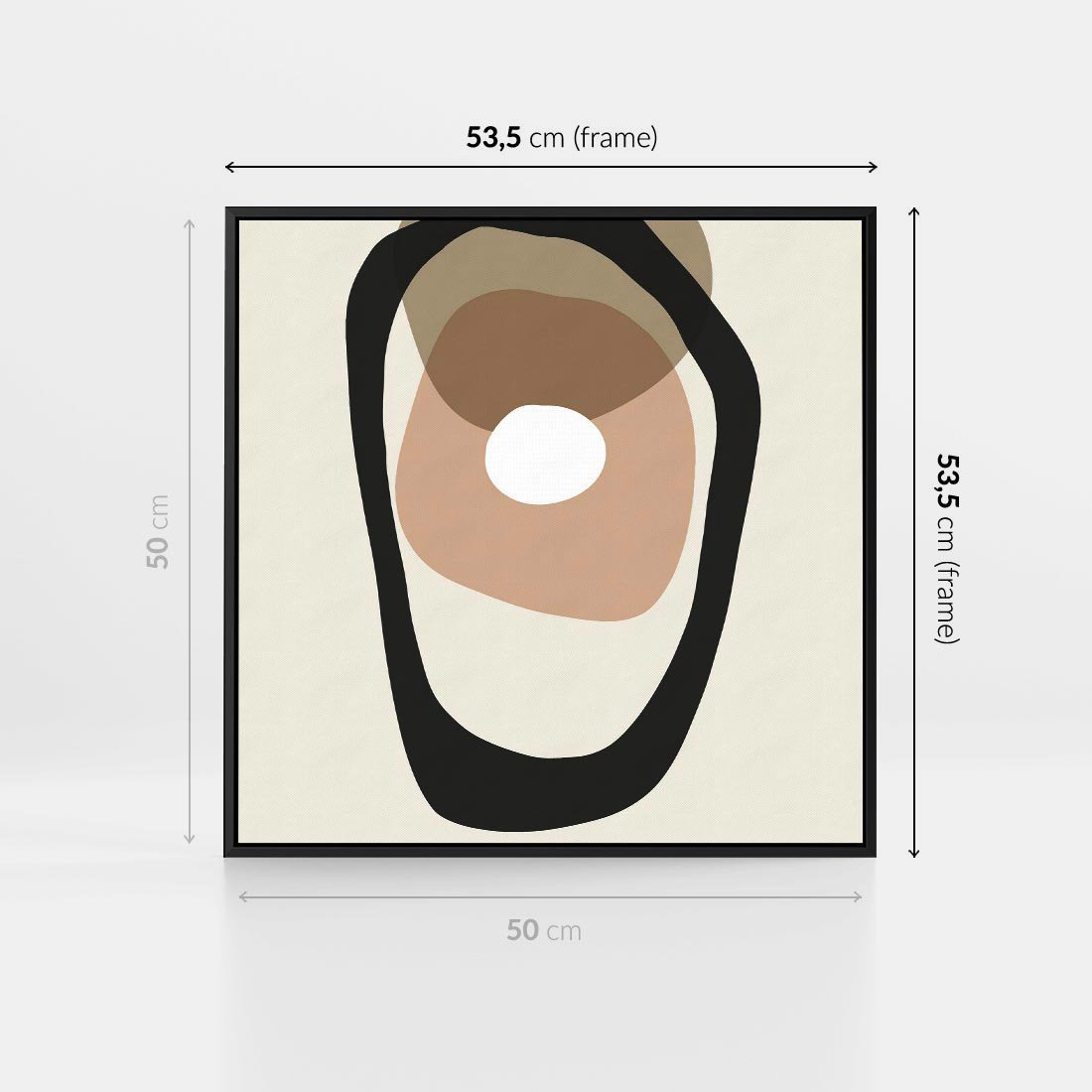 Obraz w ramie 50x50 - Intrygujące Zaskoczenia - beżowa abstrakcyjna kompozycja, czarny akcent - rama czarna