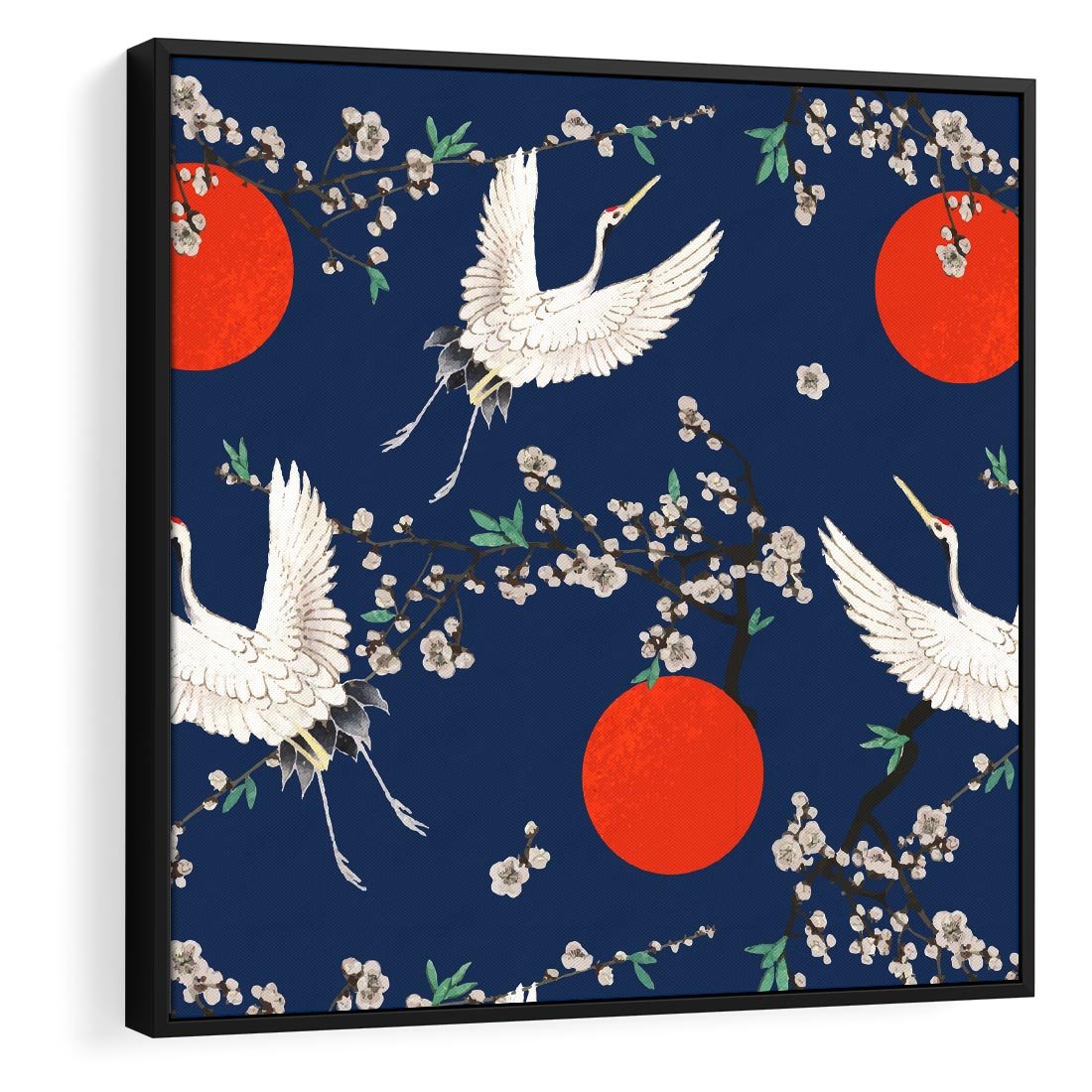 Obraz w ramie 50x50 - Japońskie Żurawie Indygo - sztuka japońska, japonia - rama czarna