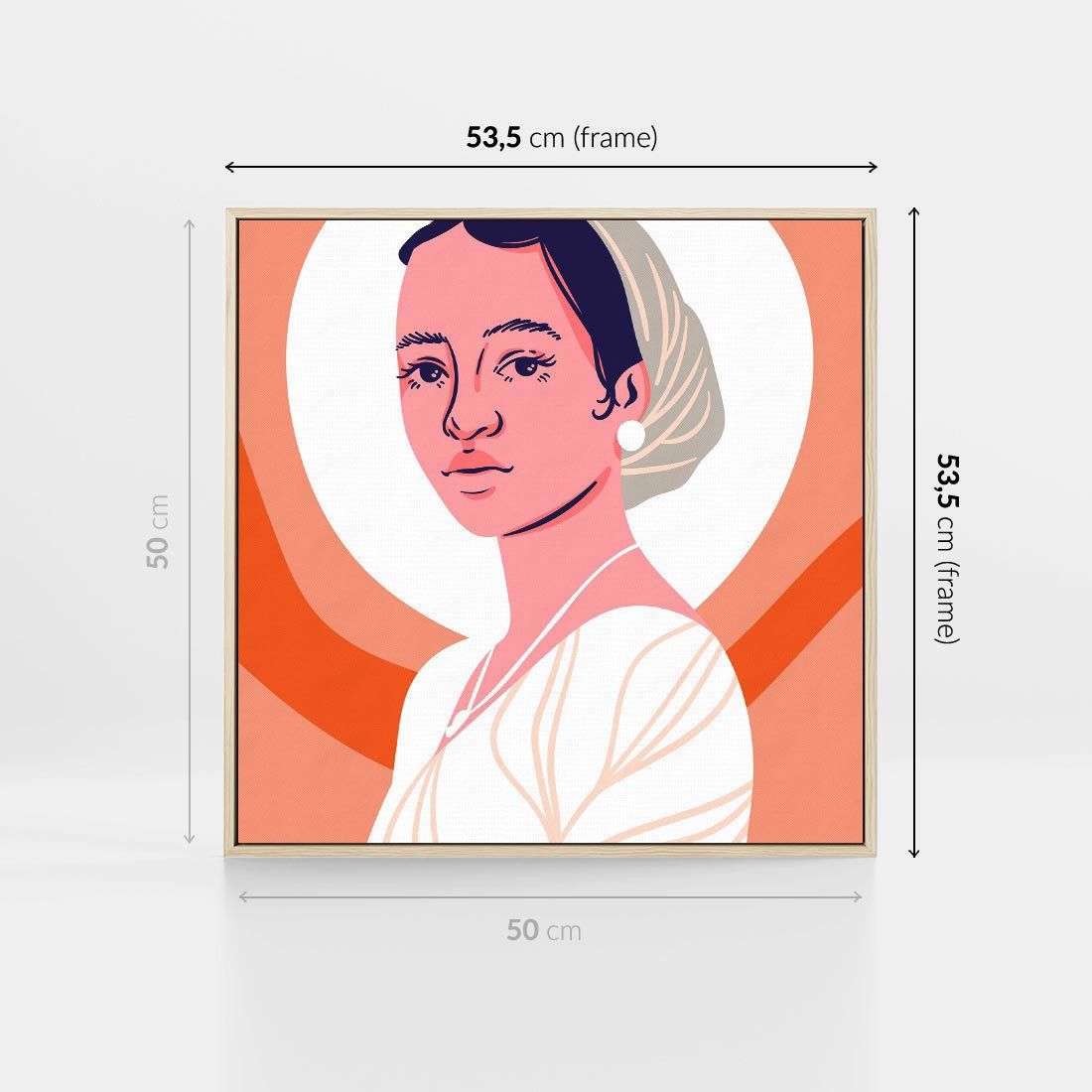 Obraz w ramie 50x50 - Kobieca Harmonia - nowoczesny plakat, styl retro - rama drewno