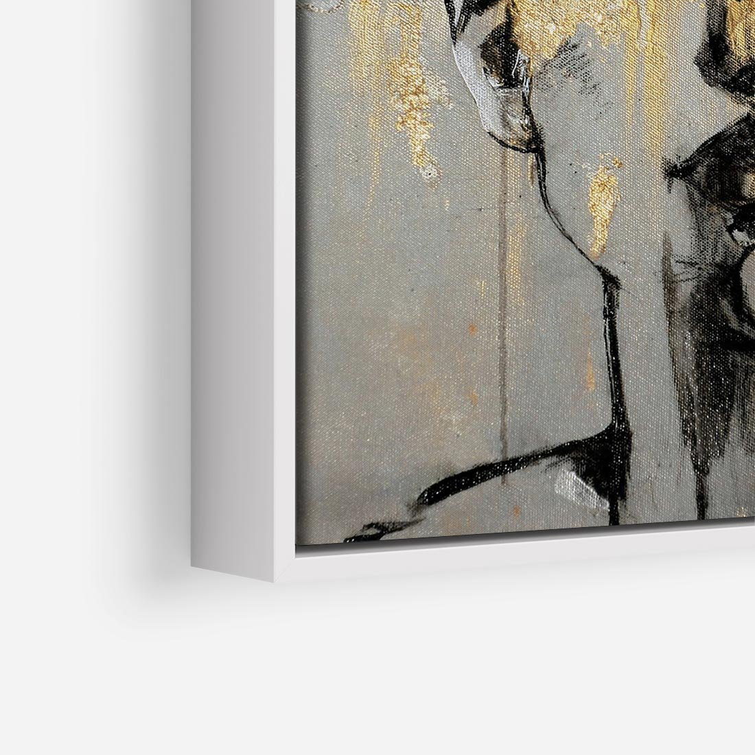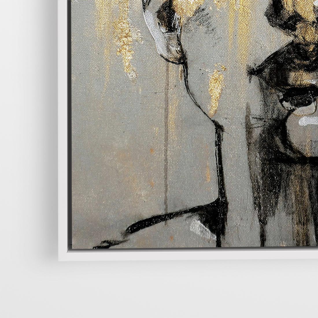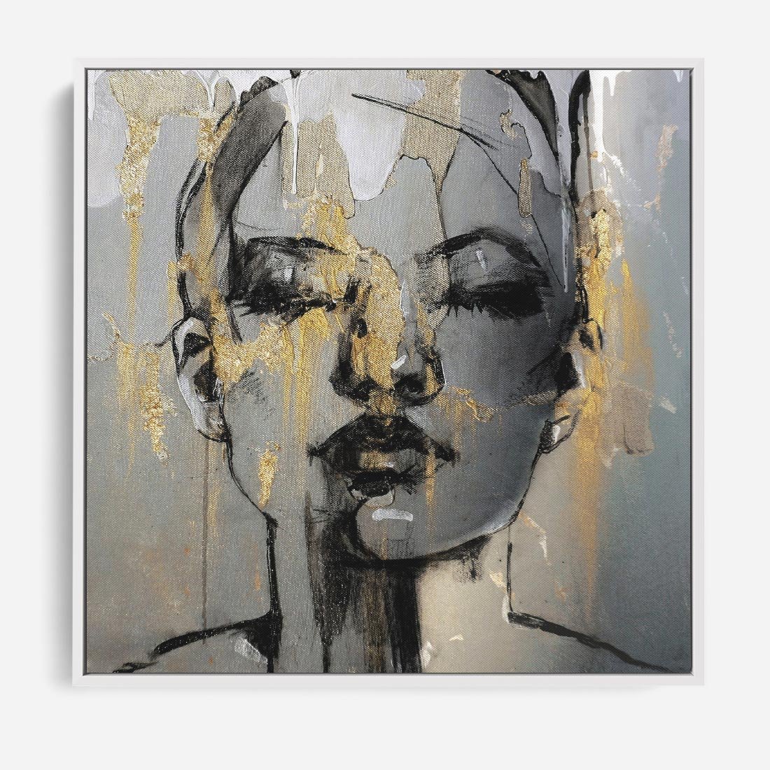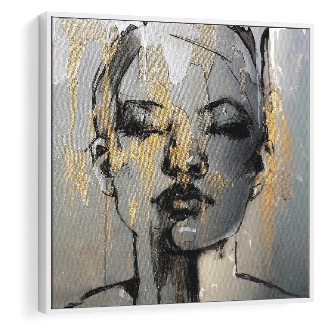 Obraz w ramie 50x50 - Kobieta - Abstrakcyjne Malowidło - złote, usta abstrakcja - rama biała