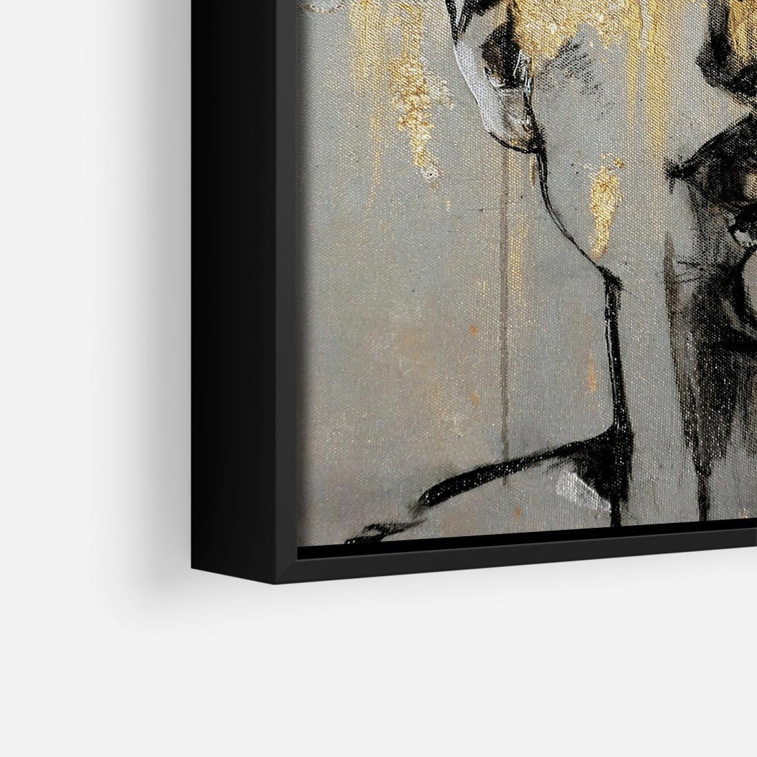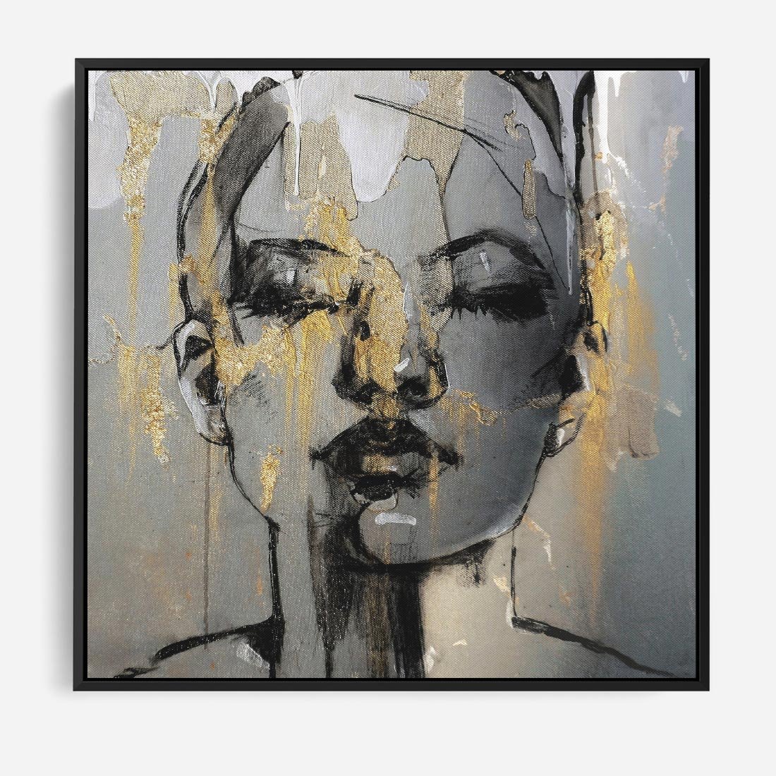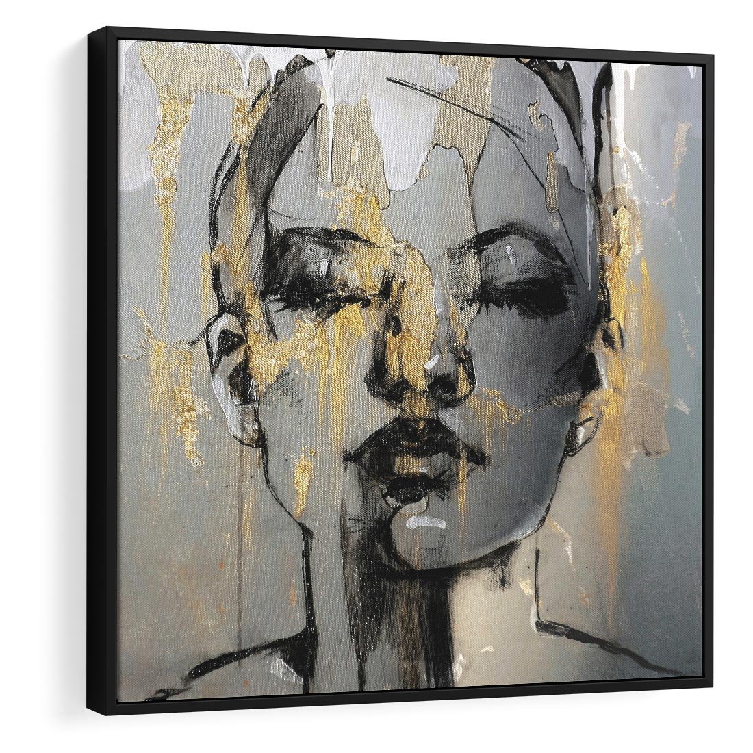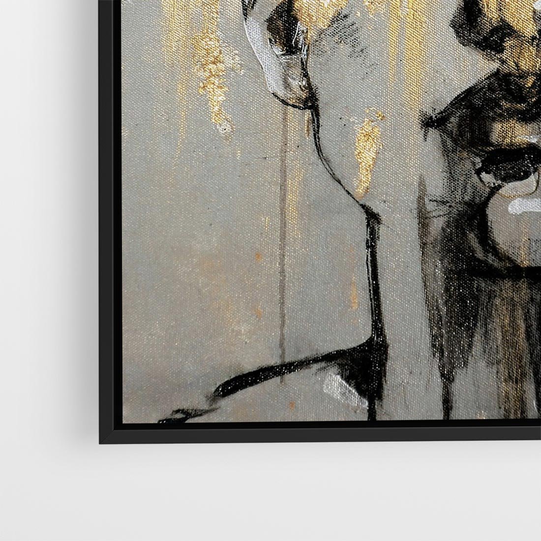 Obraz w ramie 50x50 - Kobieta - Abstrakcyjne Malowidło - złote, usta abstrakcja - rama czarna