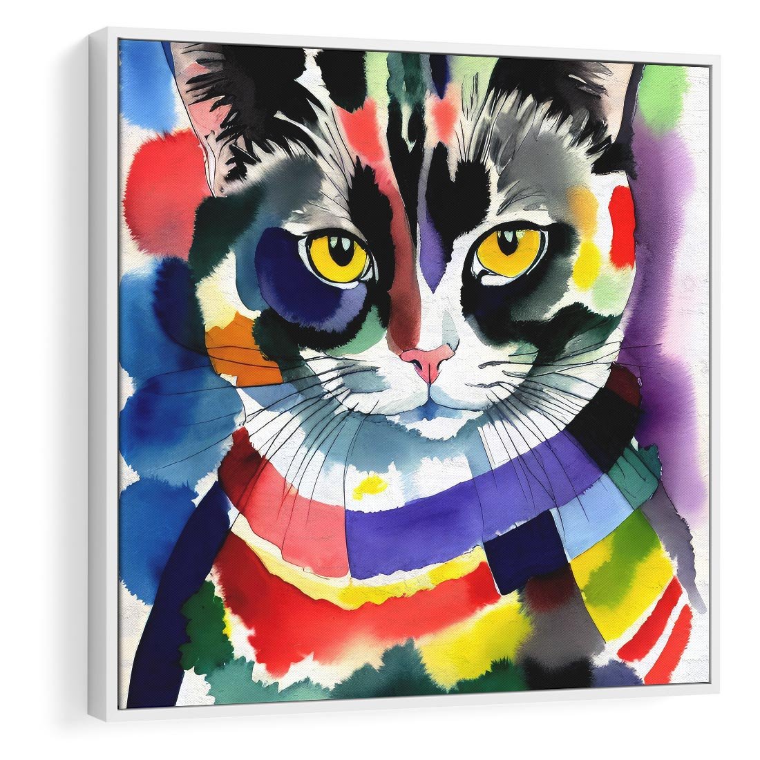 Obraz w ramie 50x50 - Koci Przyjaciel - abstrakcyjny obraz, akwarela - rama biała