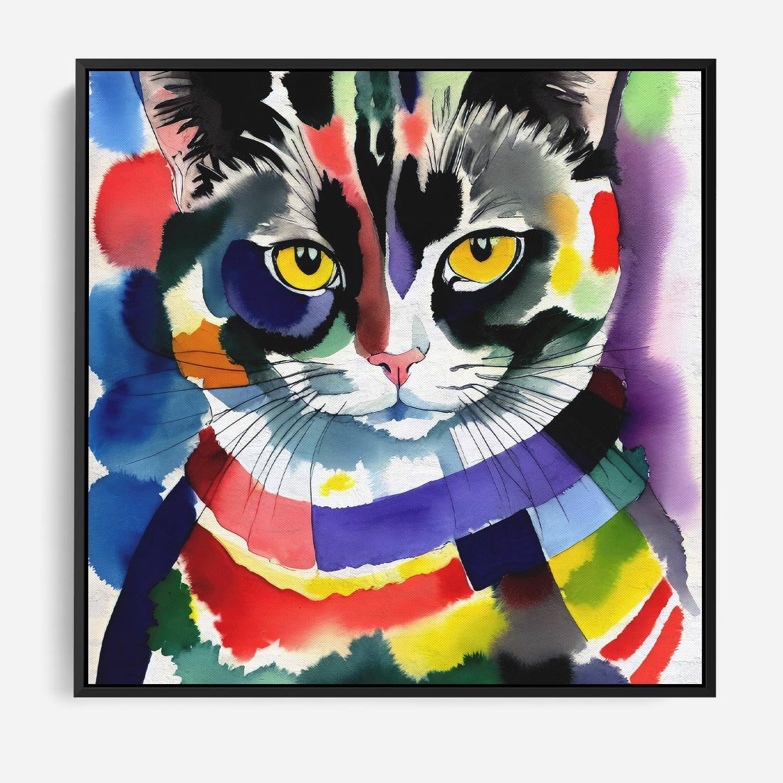 Obraz w ramie 50x50 - Koci Przyjaciel - abstrakcyjny obraz, akwarela - rama czarna