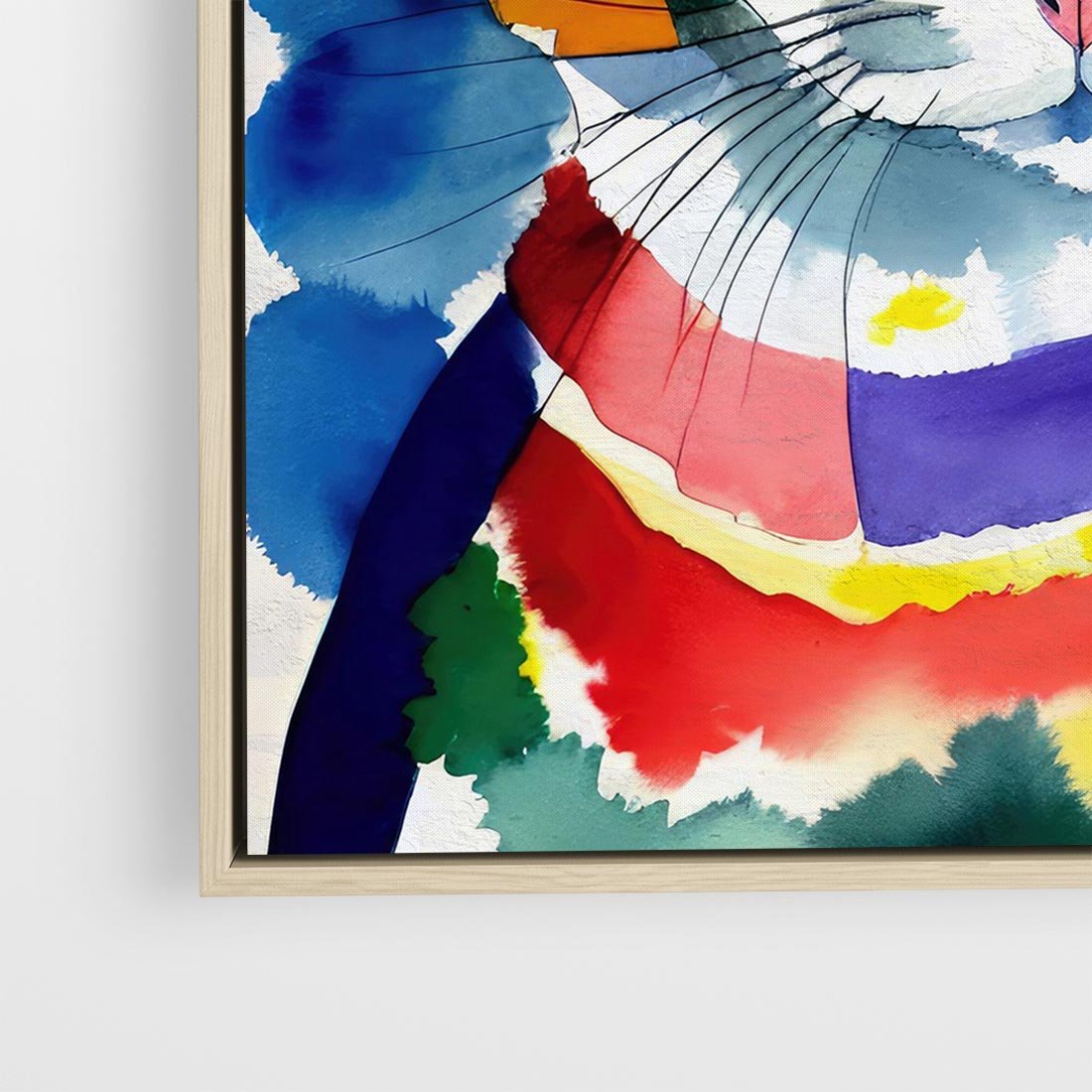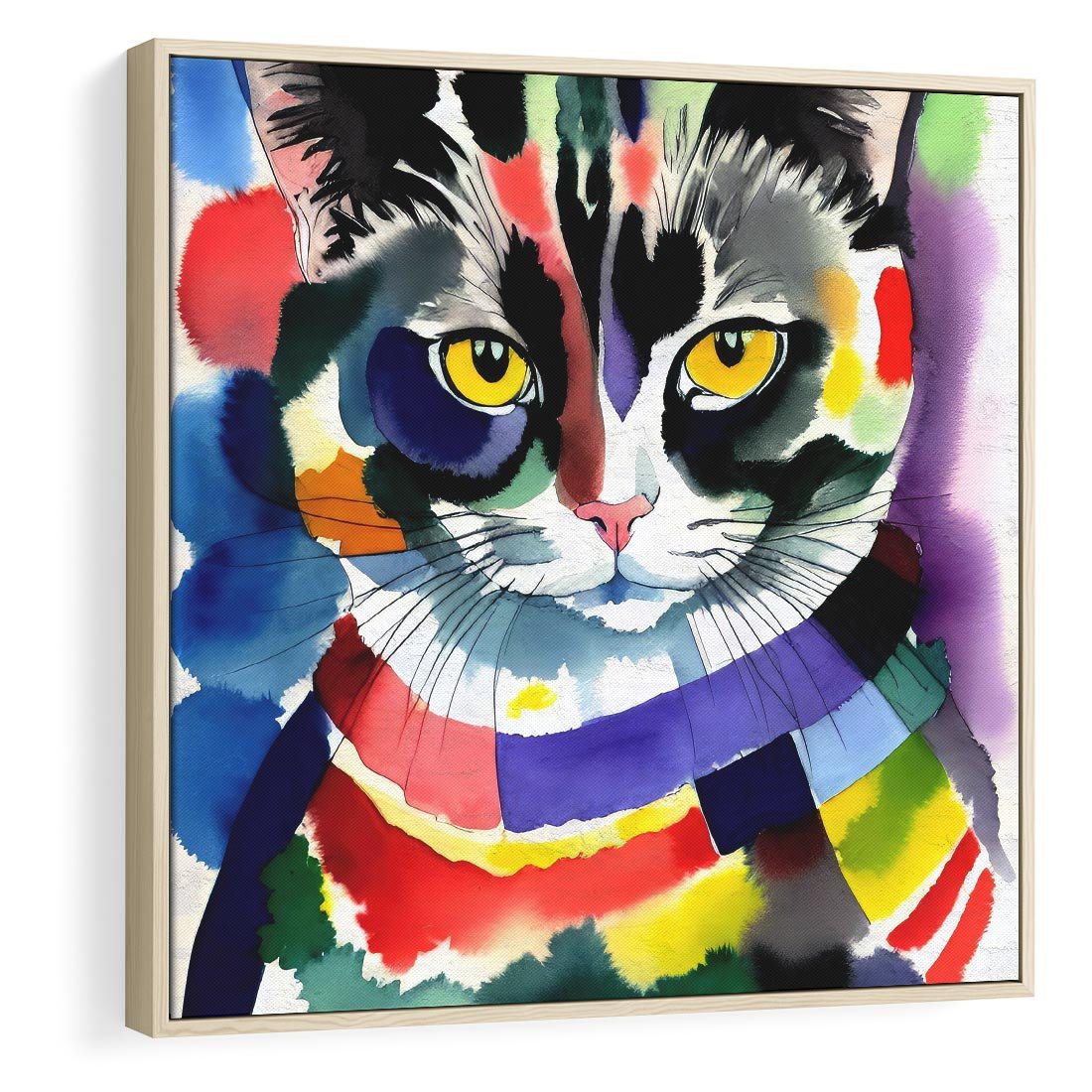 Obraz w ramie 50x50 - Koci Przyjaciel - abstrakcyjny obraz, akwarela - rama drewno
