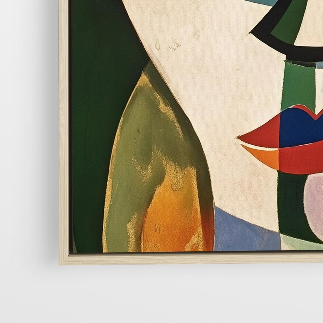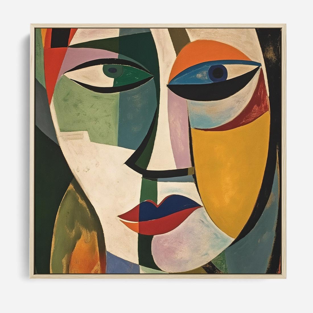 Ten abstrakcyjny obraz olejny przedstawia twarz kobiety w stylu nawiązującym do Picassa. Żywe i ekspresyjne kolory tworzą dynamiczną kompozycję, ukazującą emocje i indywidualność. To unikalne dzieło sztuki wyróżni się w każdym wnętrzu.