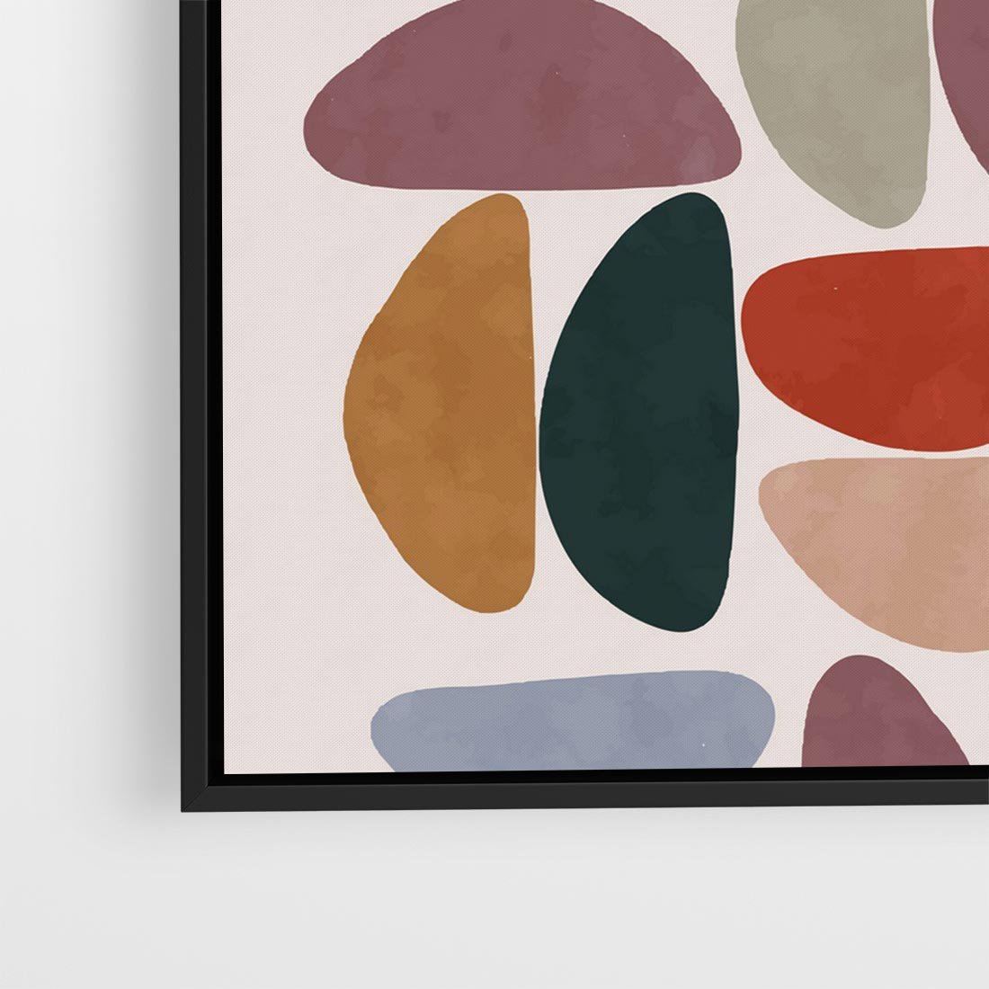 Ten abstrakcyjny obraz to harmonijna geometryczna kompozycja w stylu boho. Wyróżniają się na nim różnorodne kształty i wzory, tworząc unikalny plakat, który dodaje wyjątkowego charakteru i artystycznego ducha do każdego wnętrza.