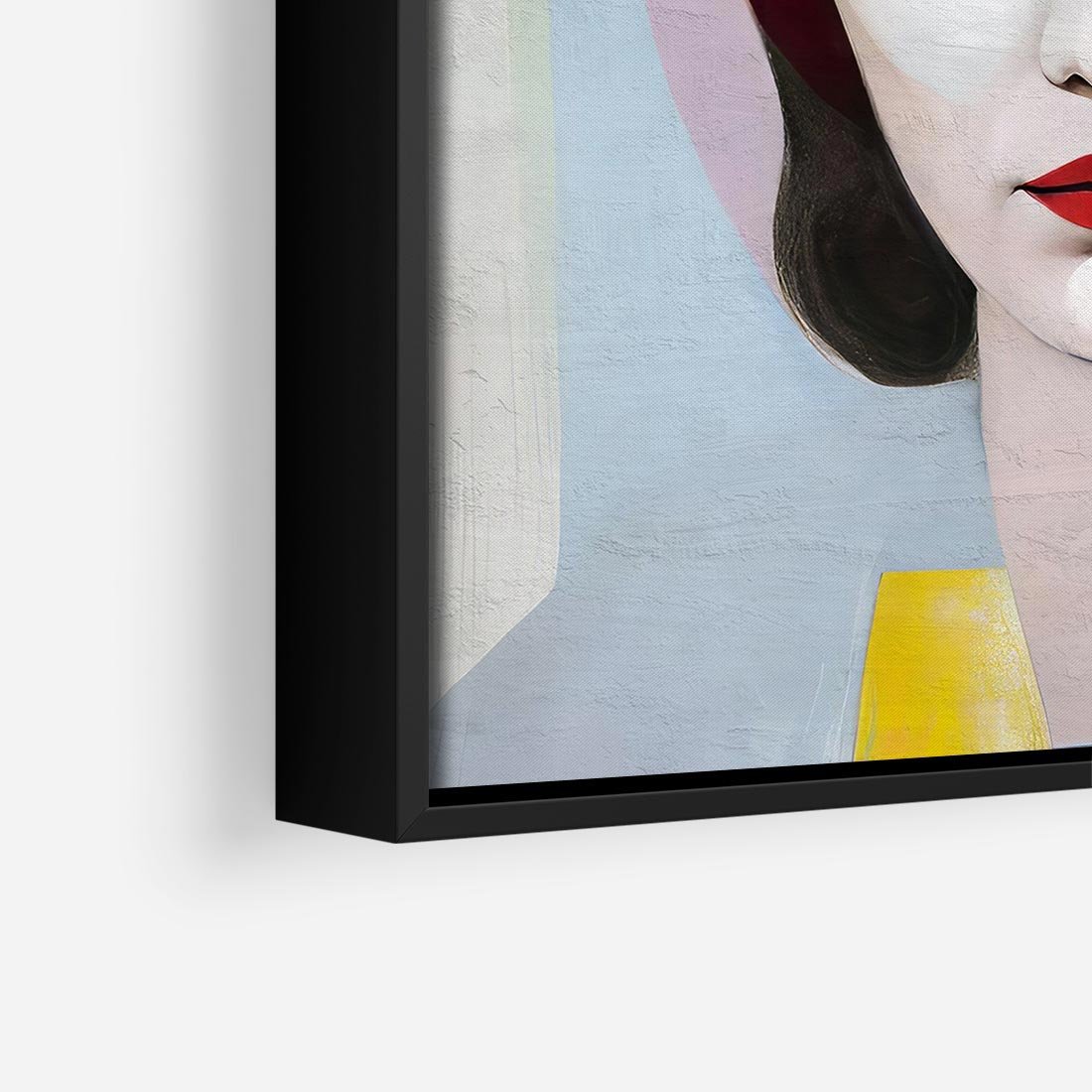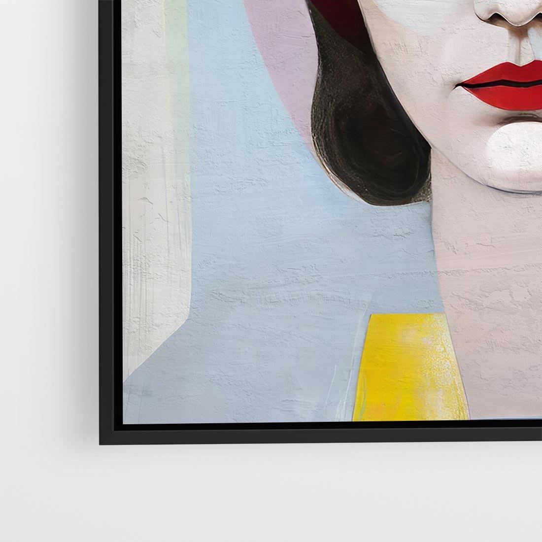 Obraz w ramie 50x50 - Kolorowe Granice Form - abstrakcyjny obraz olejny, portret twarzy kobiety - rama czarna