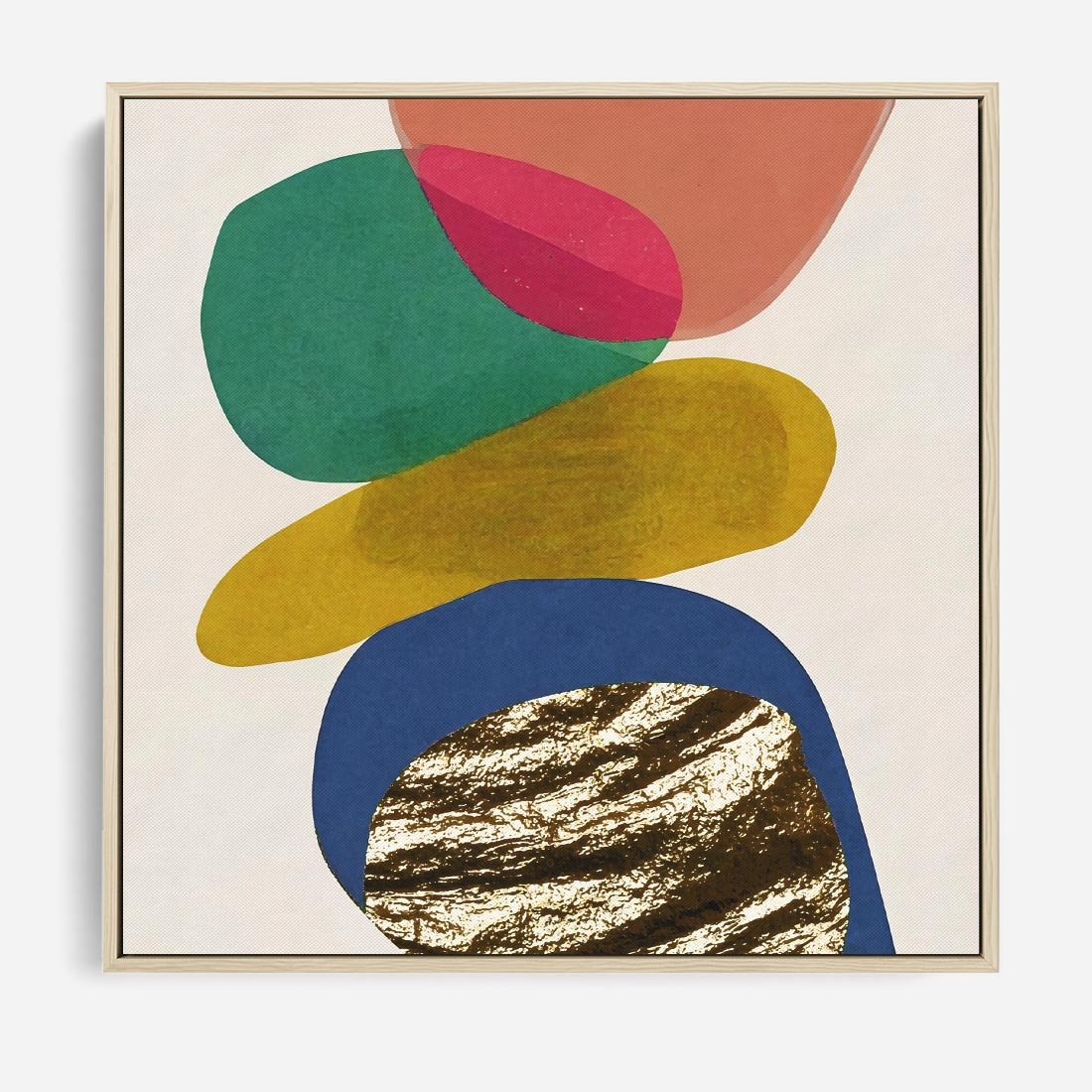 Obraz w ramie 50x50 - Kolorowe Przenikanie Kształtów - abstrakcyjne formy, obraz olejny - rama drewno