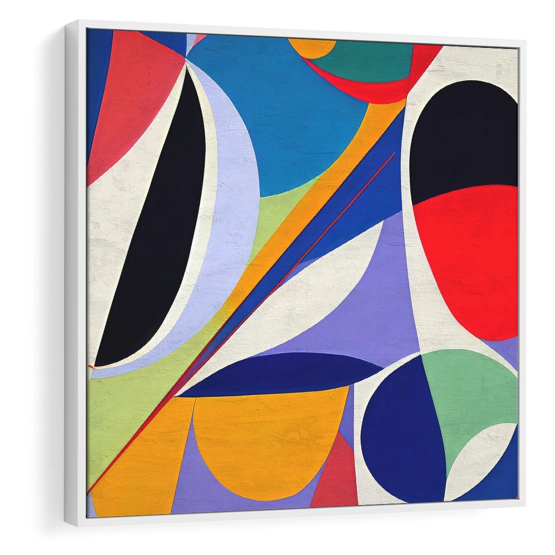 Obraz w ramie 50x50 - Kolorowe Przesunięcia Kształtów - abstrakcyjny obraz olejny, żywe kolory - rama biała