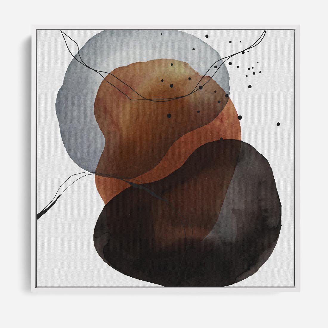 Obraz w ramie 50x50 - Kolorowe Wizje - abstrakcyjne plamy akwarelowe, czarny szkic - rama biała
