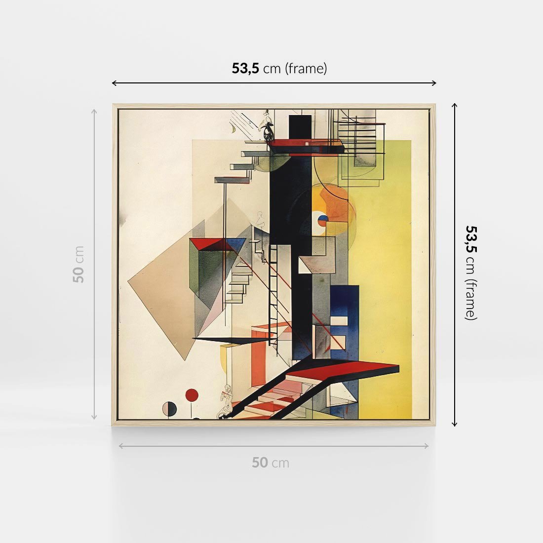 Ten abstrakcyjny obraz nawiązuje do stylu Wassily'ego Kandinsky'ego, z jego charakterystycznymi dziwnymi i niekonwencjonalnymi formami. Kolorowa kompozycja ożywia przestrzeń i przyciąga uwagę, pozostawiając widza z fascynującym wrażeniem nieokreślonej abstrakcji.