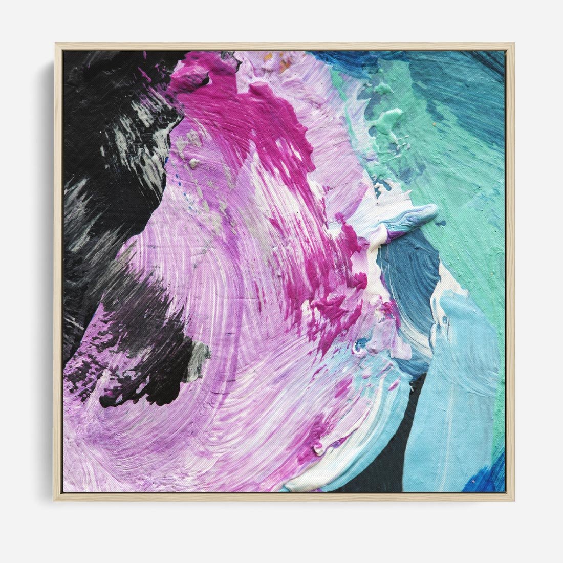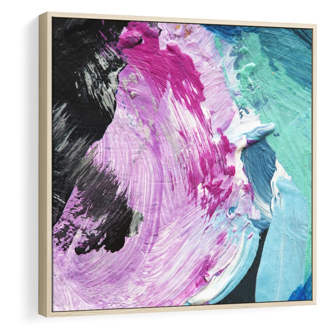 Obraz w ramie 50x50 - Kolorowy rój wyobraźni - rozlane kolorowe farby olejne, abstrakcja - rama drewno