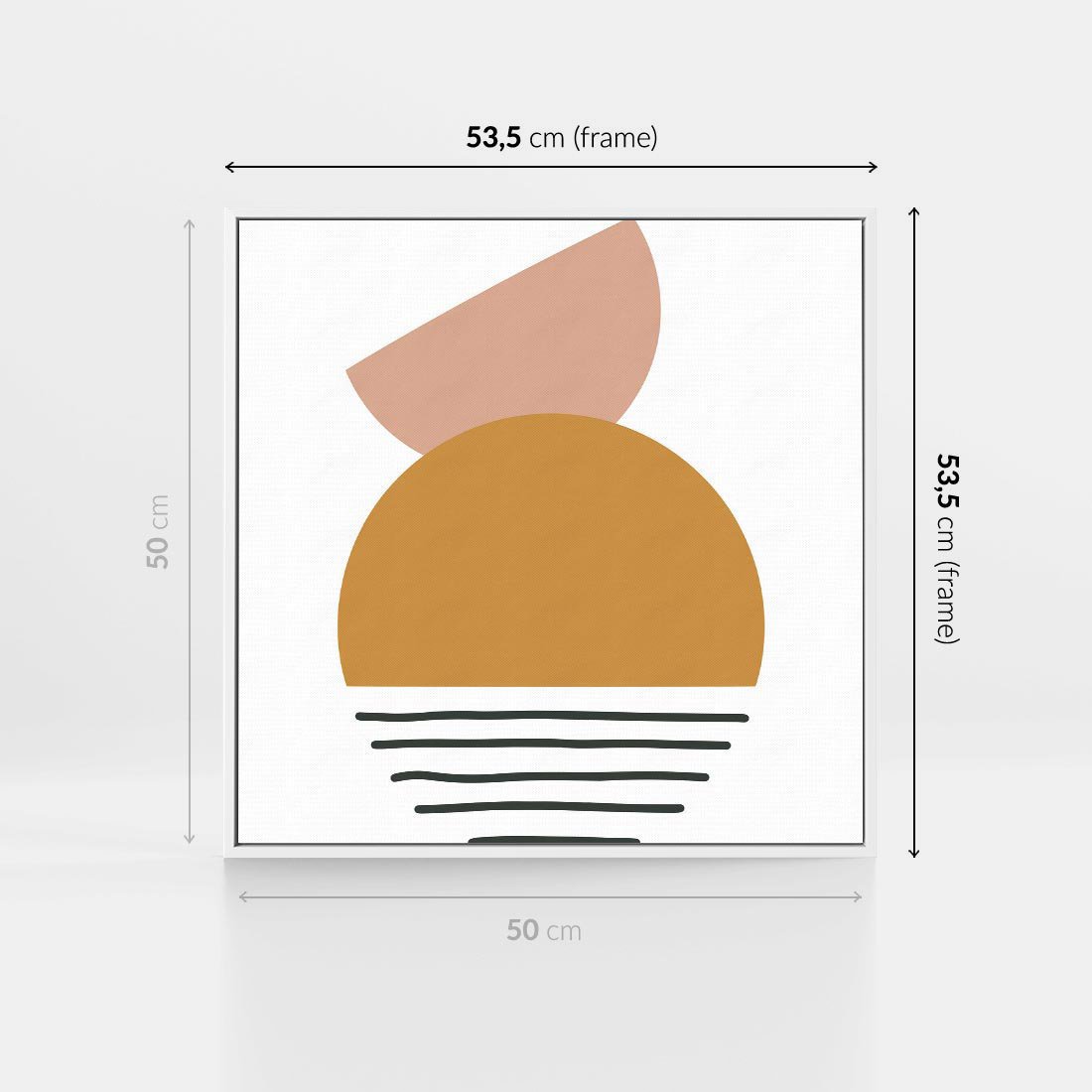 Ta zachwycająca kompozycja kół i kresek w ciepłych odcieniach to hołd dla estetyki mid century. Zmysłowe linie harmonijnie splatają się z geometrycznymi formami, tworząc dynamiczny obraz, który przenosi cię w podróż w czasie do inspirującej epoki sztuki.