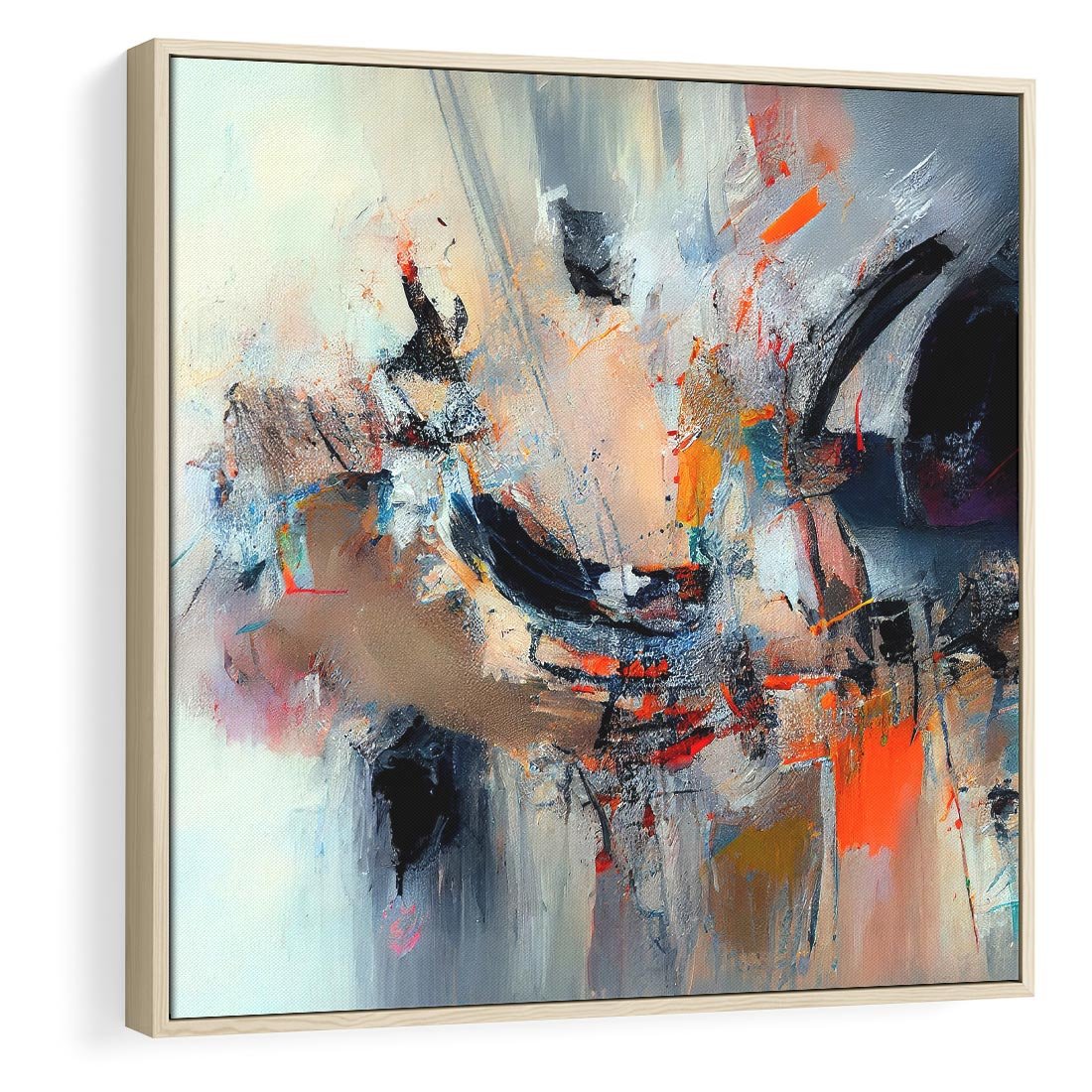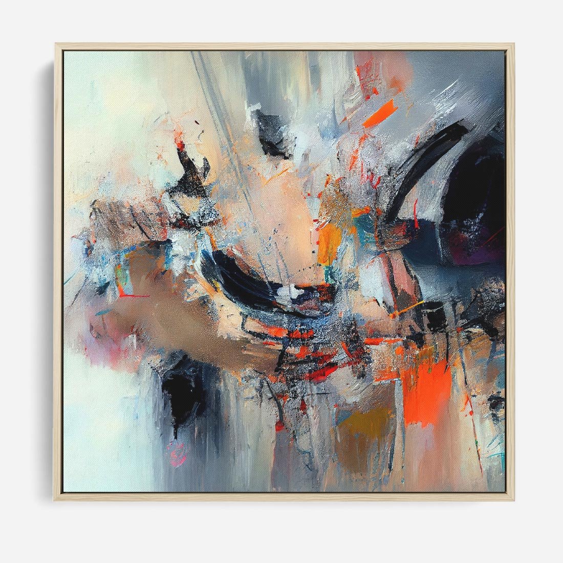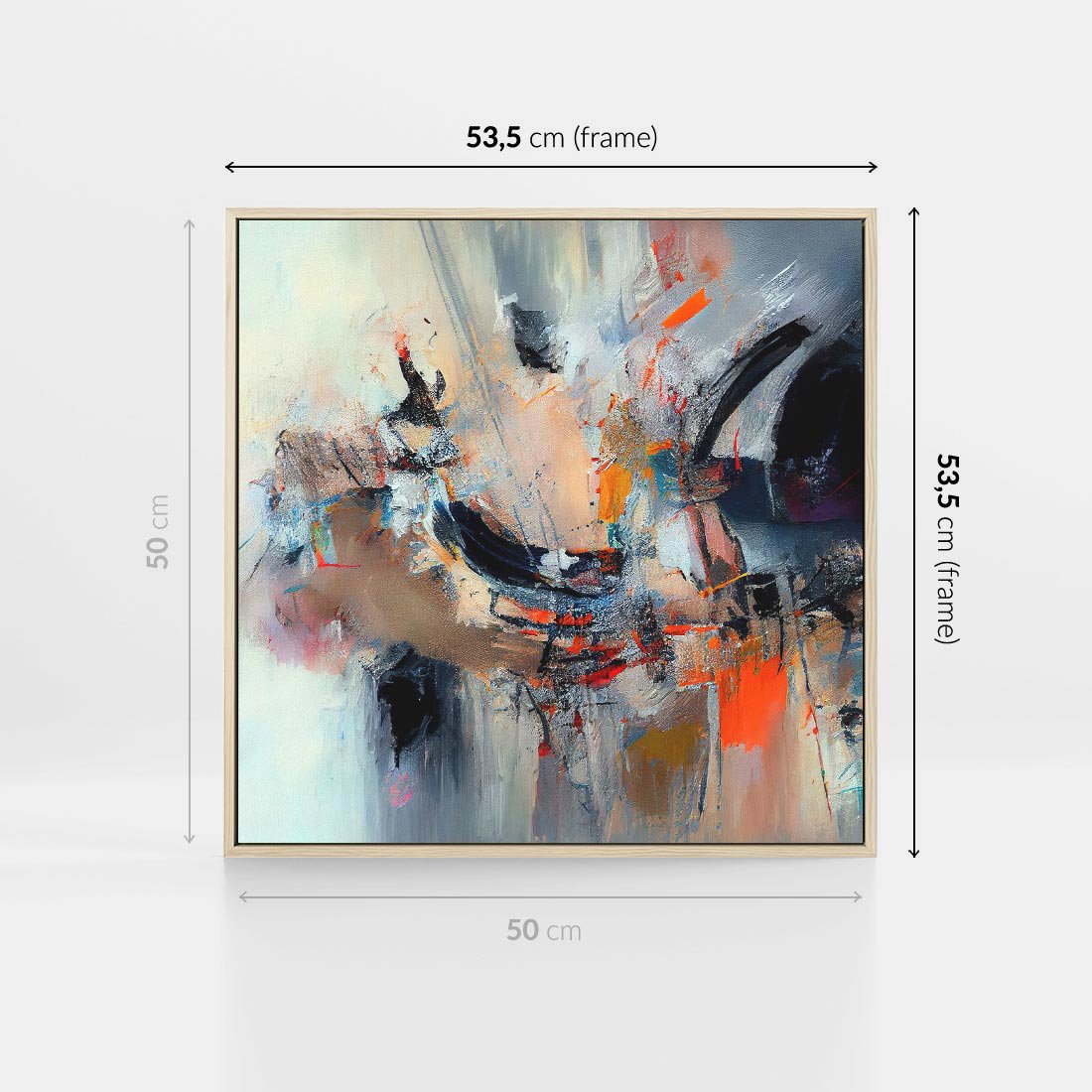 Obraz w ramie 50x50 - Kontrapunkty zatajonych uczuć - dynamiczna abstrakcja, bałagan na płótnie - rama drewno