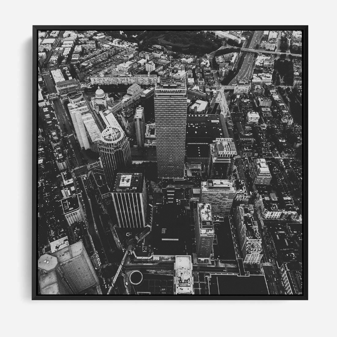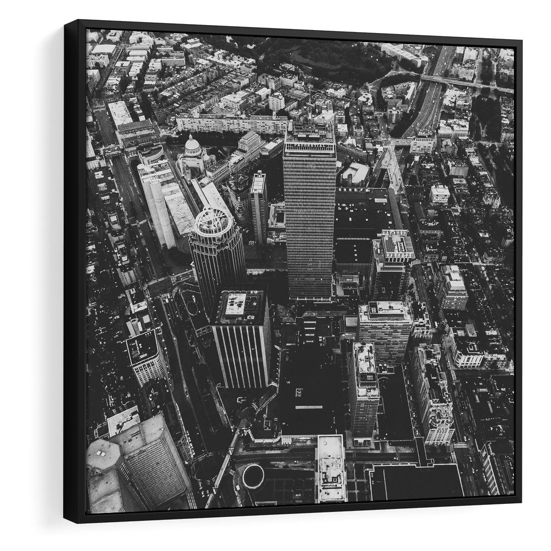 Obraz w ramie 50x50 - Kontrastujące miasto - miasto, biało - rama czarna