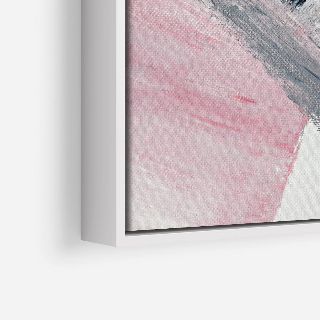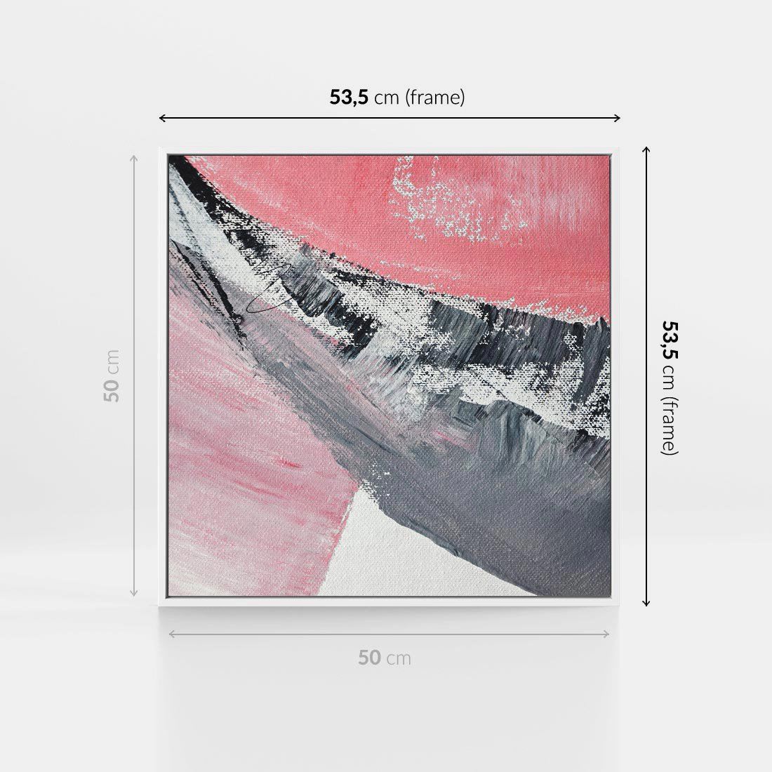 Obraz w ramie 50x50 - Kontrastujący Ruch Emocji - abstrakcyjne pasy farby, kolory róż szary czarny - rama biała