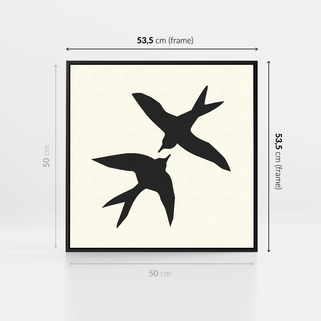 Obraz w ramie 50x50 - Kreatywne Echa - jaskółki, minimalizm - rama czarna