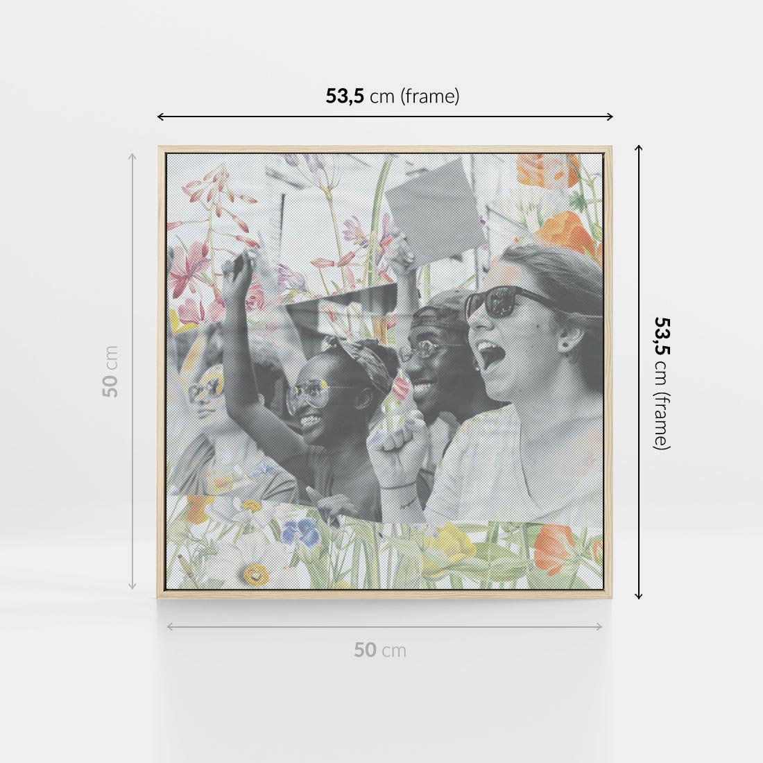 Obraz w ramie 50x50 - Księga zaklętych marzeń - kolaż, czarnobiałe zdjęcie wesołych młodych ludzi - rama drewno