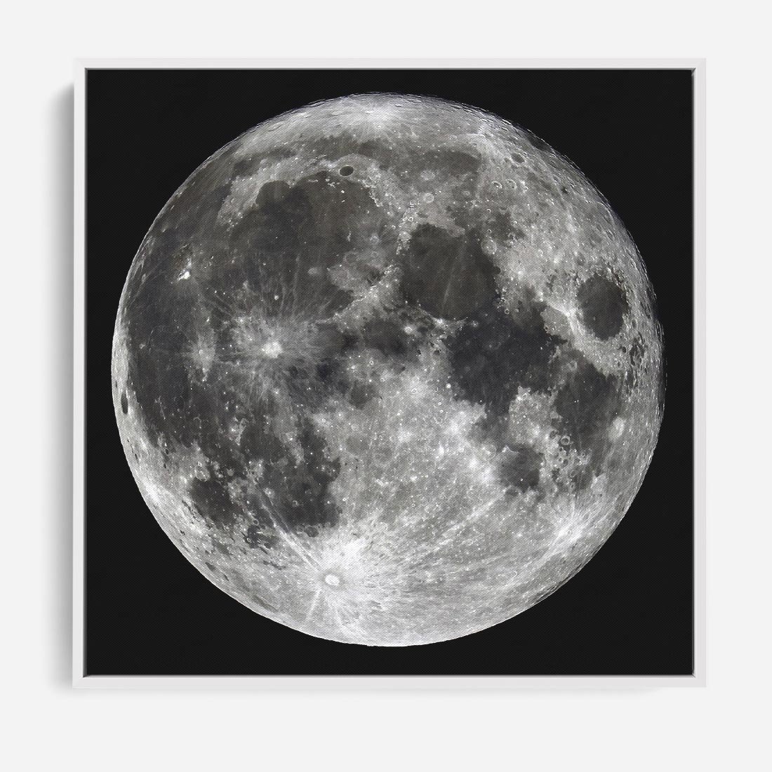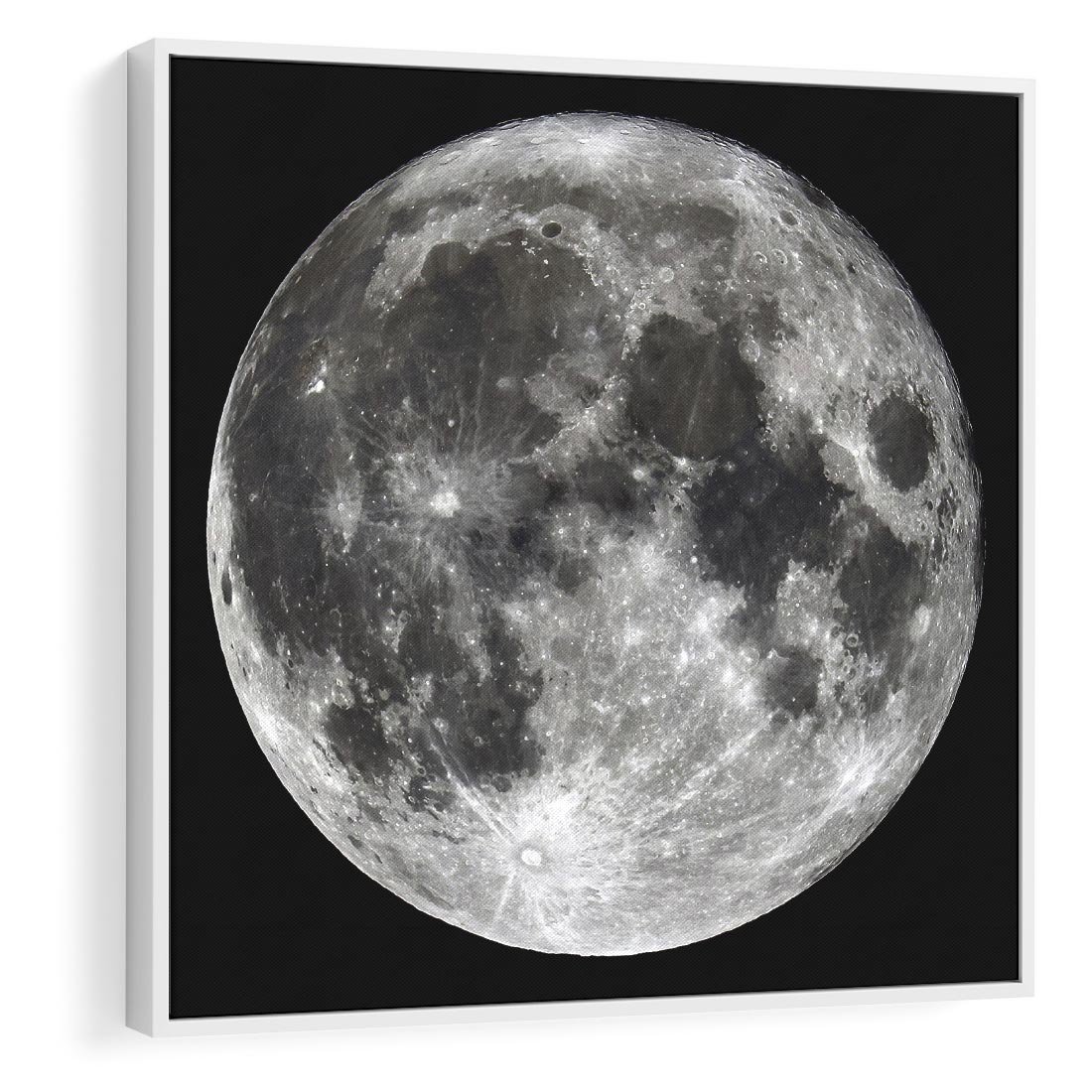 Obraz w ramie 50x50 - Księżycowa Aura - zdjęcie, ogromny księżyc na czarnym tle - rama biała