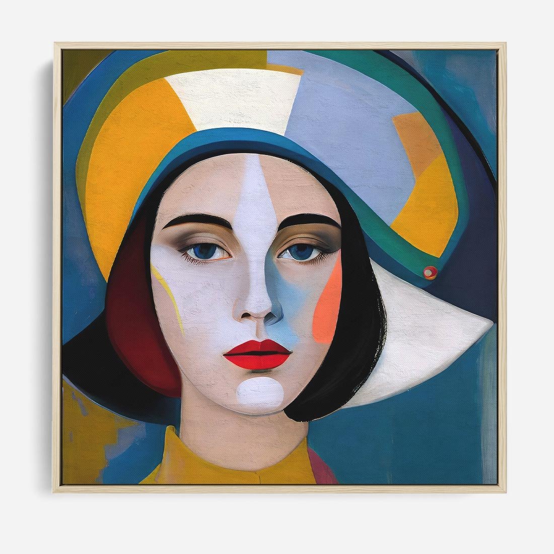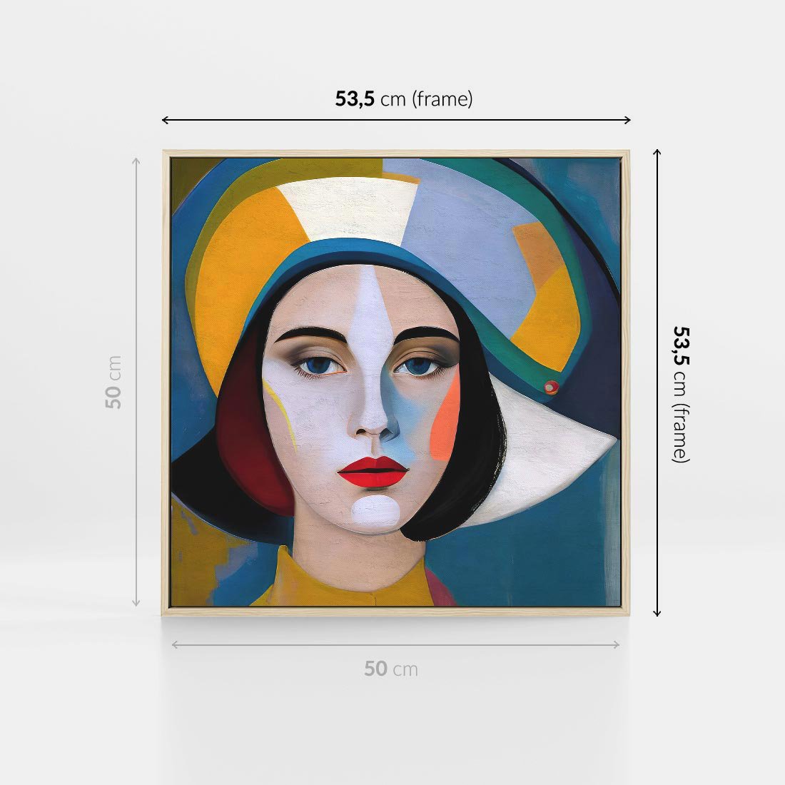Obraz w ramie 50x50 - Kształtujące Widzenia - abstrakcyjny obraz olejny, portret twarzy kobiety - rama drewno
